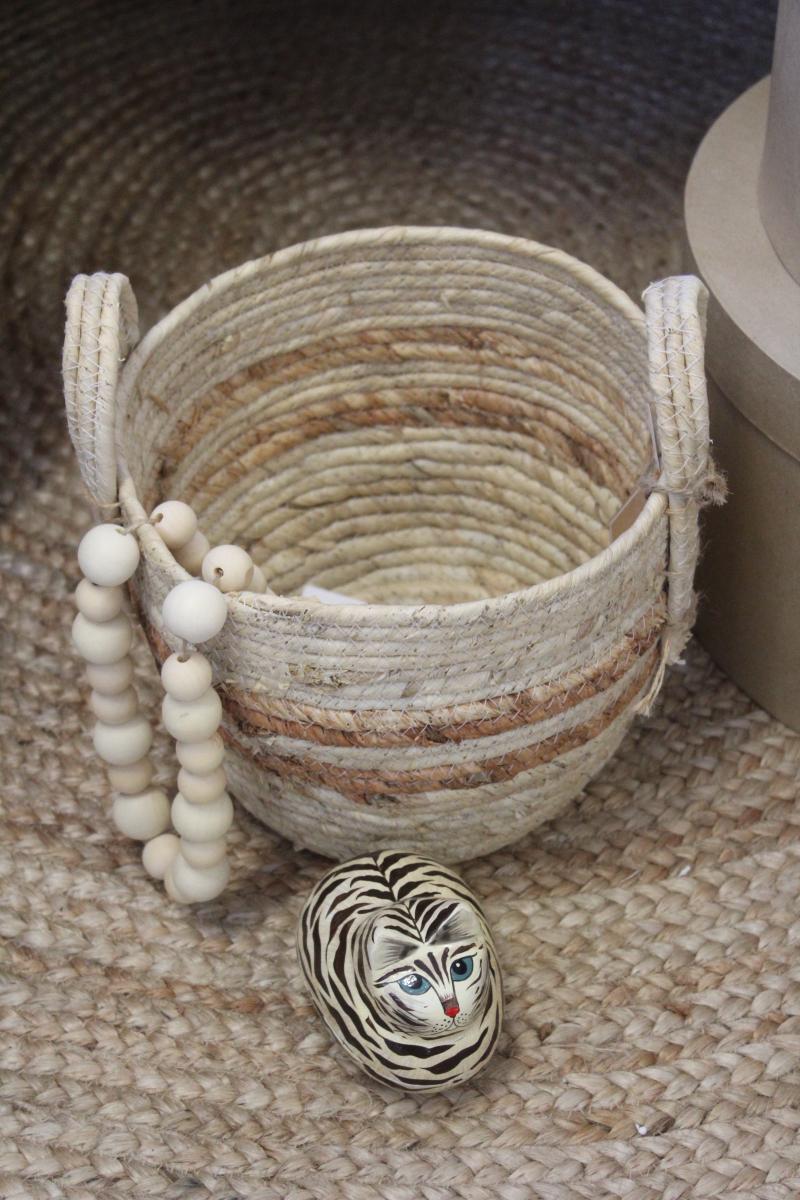 Korb aus Maisblatt, H: cm, ø: 26cm, Handarbeit von Boltze.