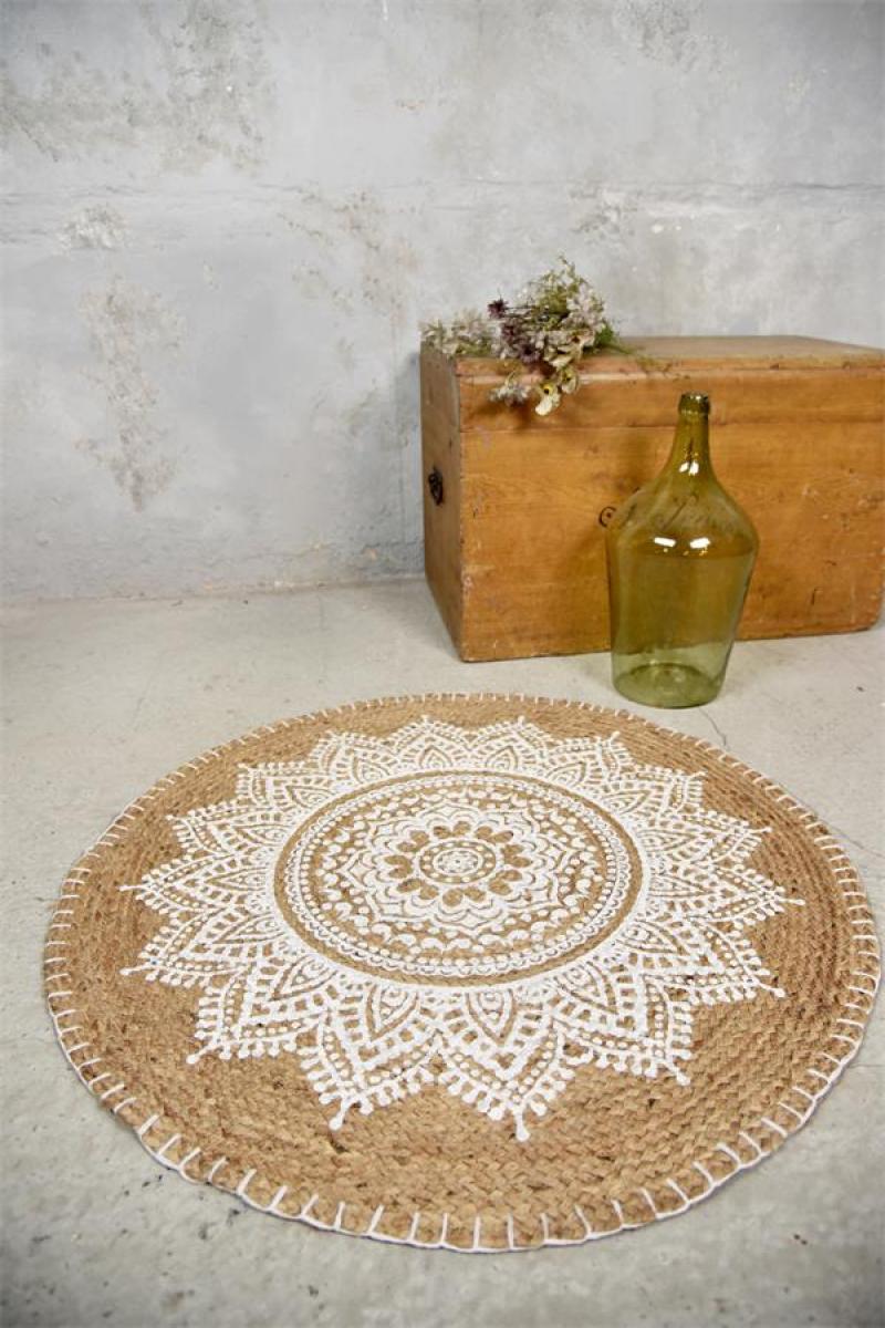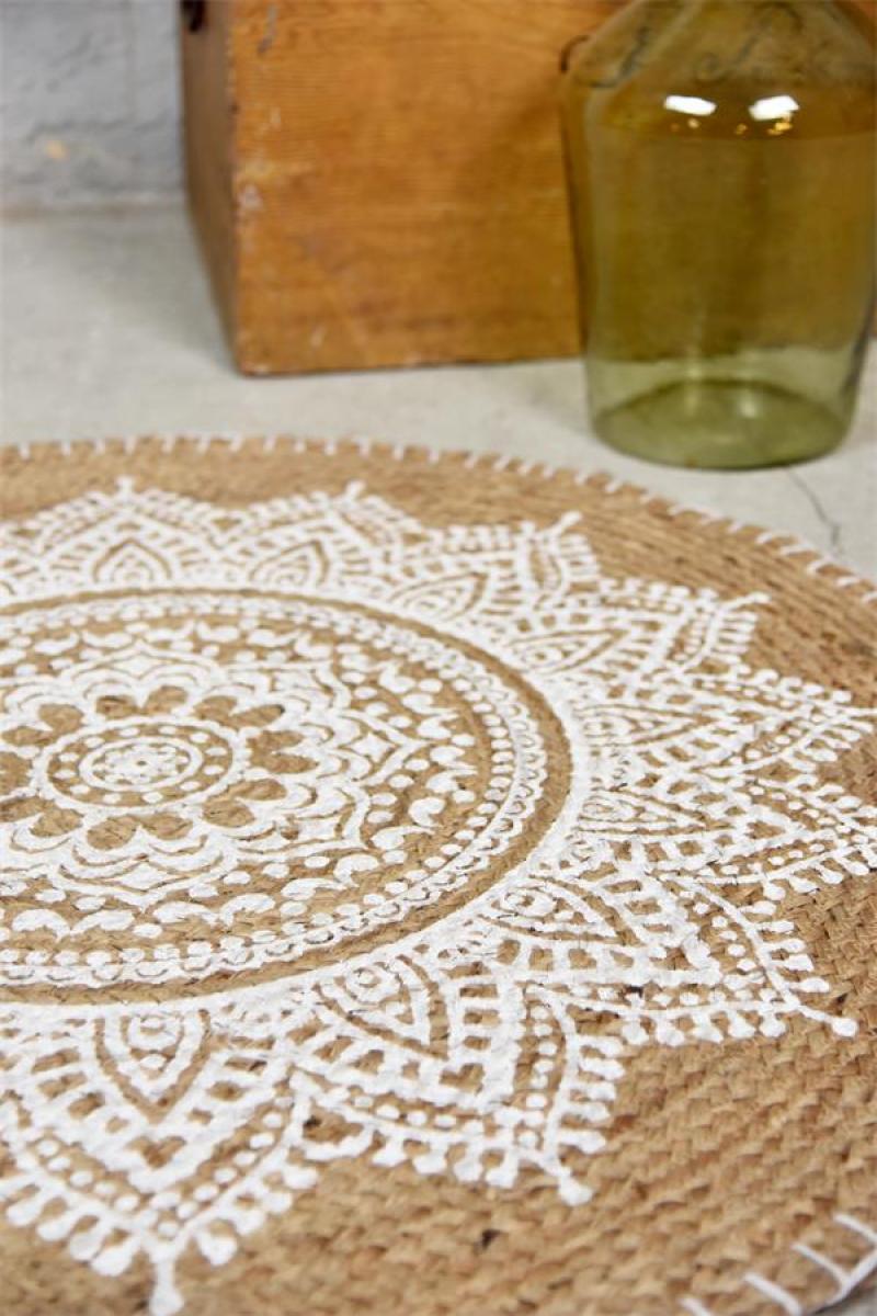 *statt 49.90* Teppich aus Jute,bedruckt, ø90cm von Jeanne d`Arc Living.