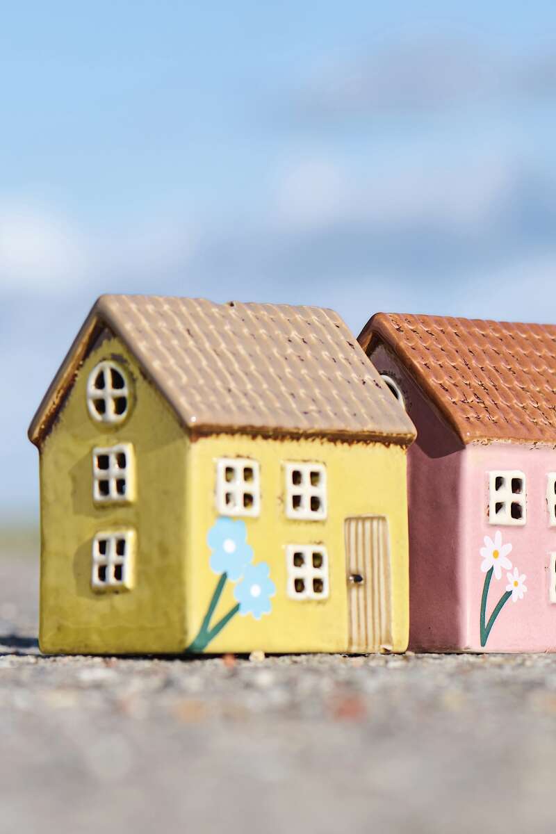 Keramikhaus Nyhavn rosa mit roter Tür H15cm