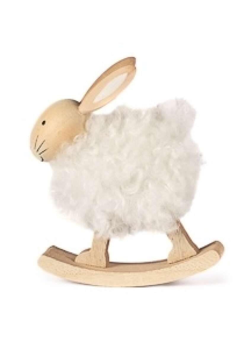 Artikelnummer: 54595Flauschiger Hase mit Plüschfell aus Holz, H10cm.