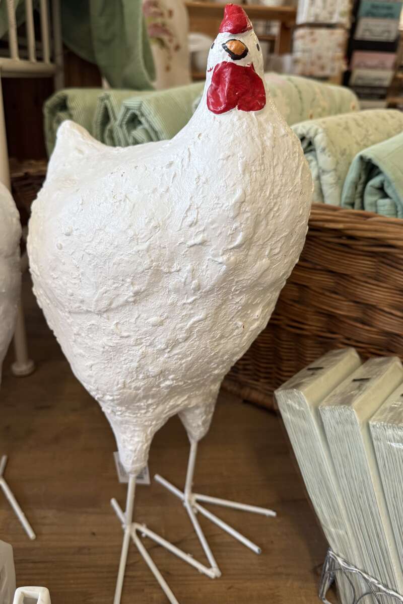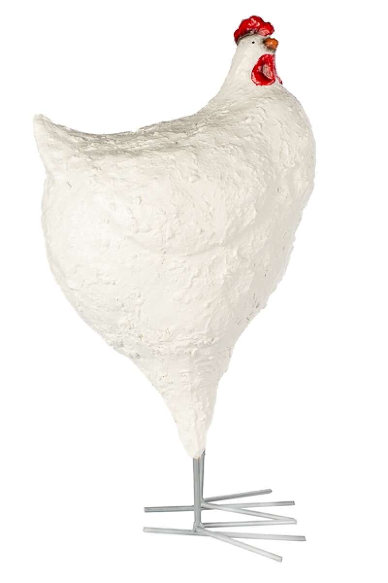 Artikelnummer: 54605Grosses Huhn aus Polyresin, auf Metallfüssen, H44cm