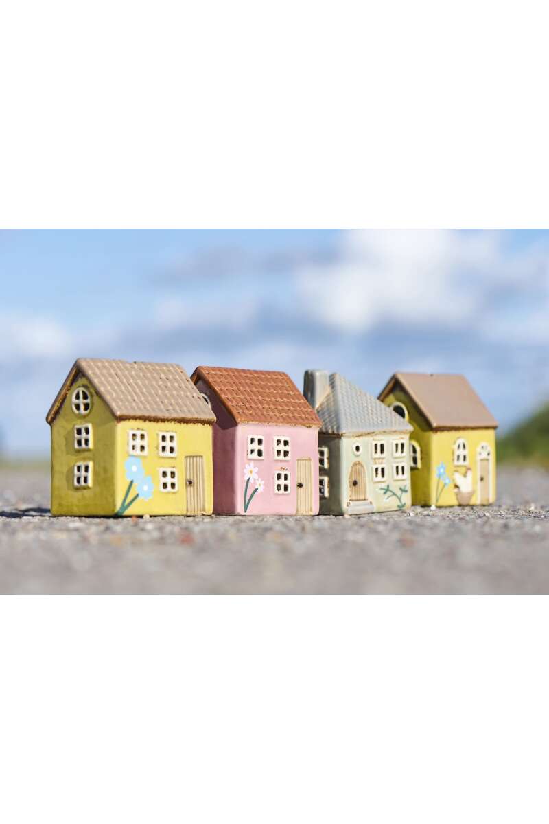 Kleines Keramikhaus inspiriert von den farbenfrohen Häusern in Nyhavn, Kopenhagen. Jedes Haus in der Serie ist ein Unikat aus handgefertigter Keramik mit rustikalem Charme. Schaffen Sie eine gemütliche Atmosphäre mit Kerzenlicht oder einer Lichterkette hinter den Fenstern. Arrangieren Sie die Häuser einzeln oder als charmantes kleines Viertel, B: 8 H: 10 L: 8cm