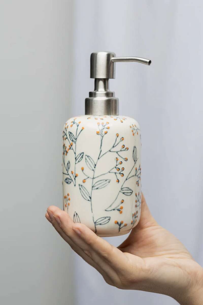 Artikelnummer: 54732Die handgefertigte Seifenschale mit filigranen, floralen Prints ist eine zarte Schönheit für dein Bad. Erleben die die filigrane Eleganz unserer handgestempelten Seifenschale mit Prints im floralen Muster! Jedes Detail wurde kunstvoll entworfen und verleiht der Schale einen Hauch von Raffinesse. Die praktischen Ablauflöcher betonen das durchdachte Design und sorgen für eine optimale Entwässerung. Kombinieren Sie die Seifenschale harmonisch mit anderen passenden Bad-Accessoires, um ein stimmiges und ansprechendes Gesamtbild in deinem Badezimmer zu schaffen. Erfahre den Luxus von sorgfältig gestalteten Details und verleihe deinem Bad eine romantische Note. Maße: 13,5 x 9,5 x 2 cm Material: Steinzeug