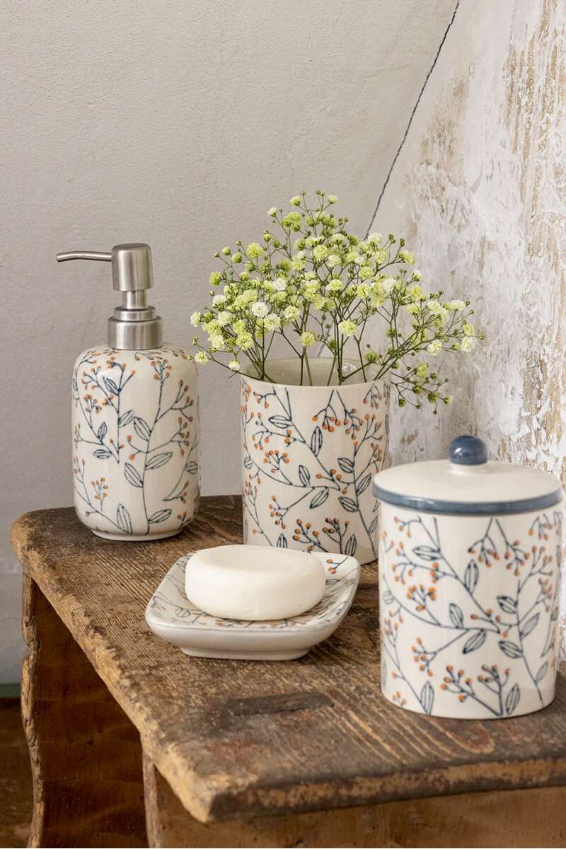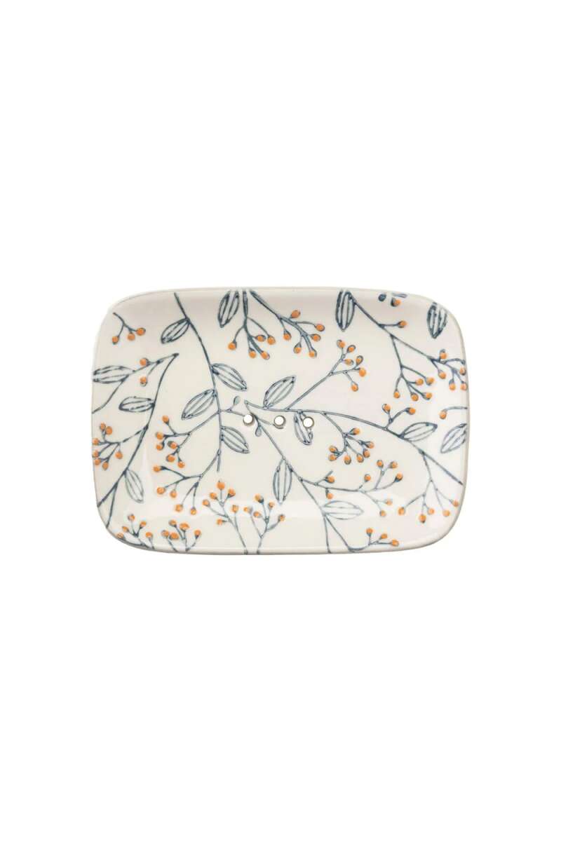 Die handgefertigte Seifenschale mit filigranen, floralen Prints ist eine zarte Schönheit für dein Bad. Erleben die die filigrane Eleganz unserer handgestempelten Seifenschale mit Prints im floralen Muster! Jedes Detail wurde kunstvoll entworfen und verleiht der Schale einen Hauch von Raffinesse. Die praktischen Ablauflöcher betonen das durchdachte Design und sorgen für eine optimale Entwässerung. Kombinieren Sie die Seifenschale harmonisch mit anderen passenden Bad-Accessoires, um ein stimmiges und ansprechendes Gesamtbild in deinem Badezimmer zu schaffen. Erfahre den Luxus von sorgfältig gestalteten Details und verleihe deinem Bad eine romantische Note. Maße: 13,5 x 9,5 x 2 cm Material: Steinzeug