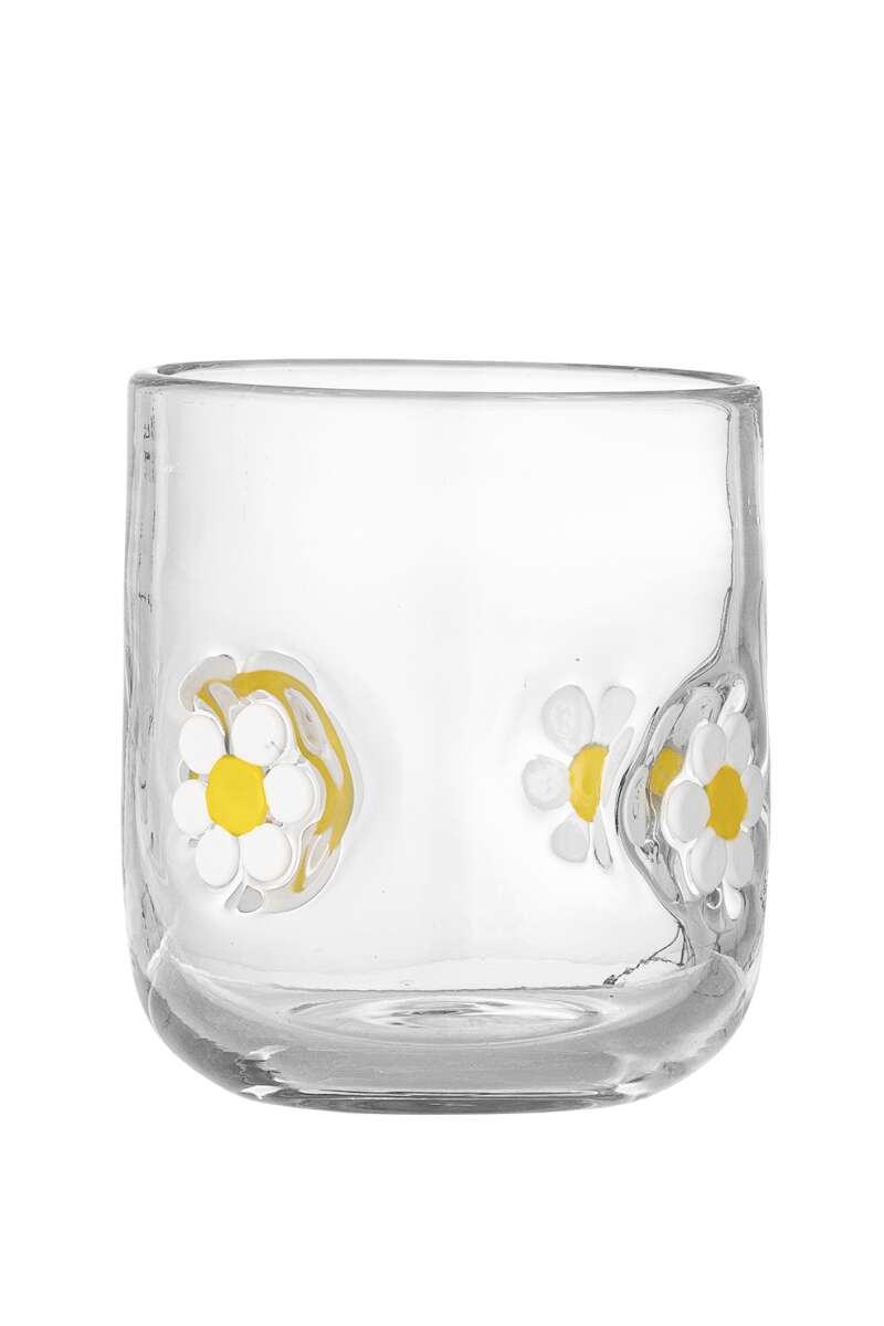 Das Buzz Trinkglas von Bloomingville ist klares Glas, verziert mit Gänseblümchenmotiven sowie zarten gelben Akzenten. Sanfte Rundungen und leichte Wellen im Glas erzeugen eine fließende Optik. Abweichungen im Muster und in der Farbintensität können vorkommen und machen jedes Stück einzigartig.D8xH9 cm, 300 ml, Spülmaschinen geeignet.