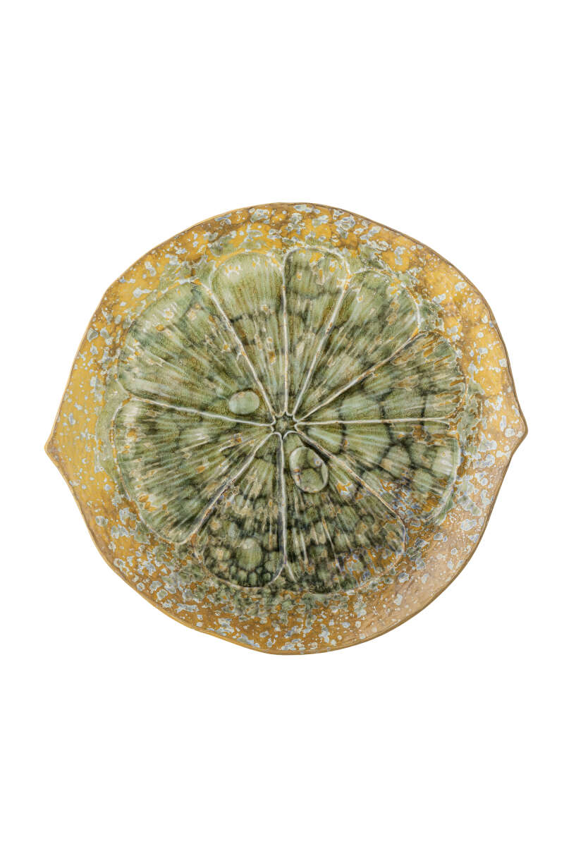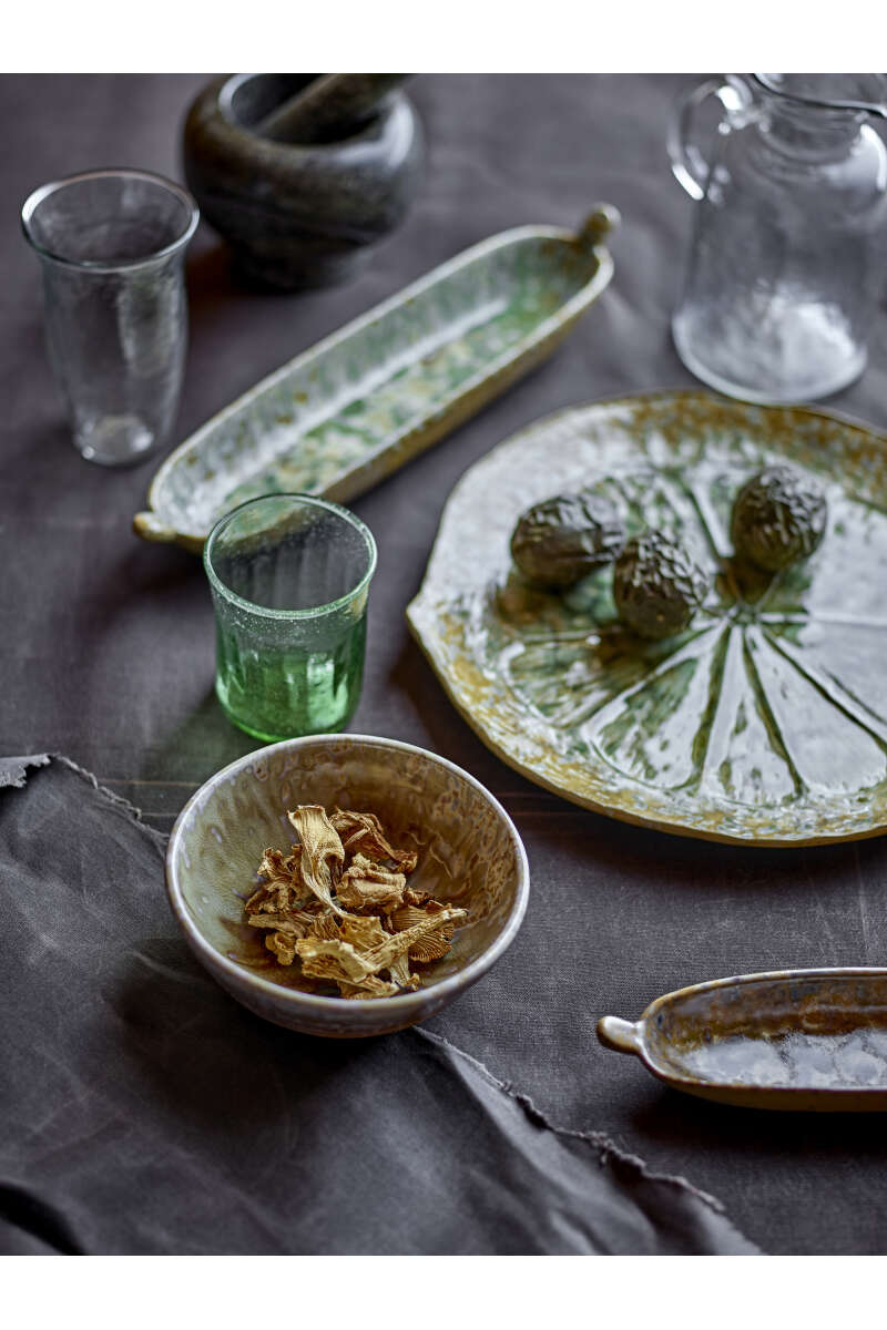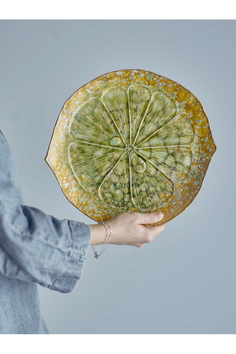 Die Servierplatte Lemon von Bloomingville ist aus Steinzeug mit reaktiver Glasur in Grüntönen hergestellt. Das große, runde Tablett ist ideal zum Servieren von Salaten, Pasteten oder größeren Portionen. Durch die Beschaffenheit der Glasur kann es zu Farbabweichungen kommen, die jedes Tablett zu einem Unikat machen. Das Tablett ist nicht zum Aufhängen geeignet, D30,5xH3 cm, Spülmaschinen geeignet