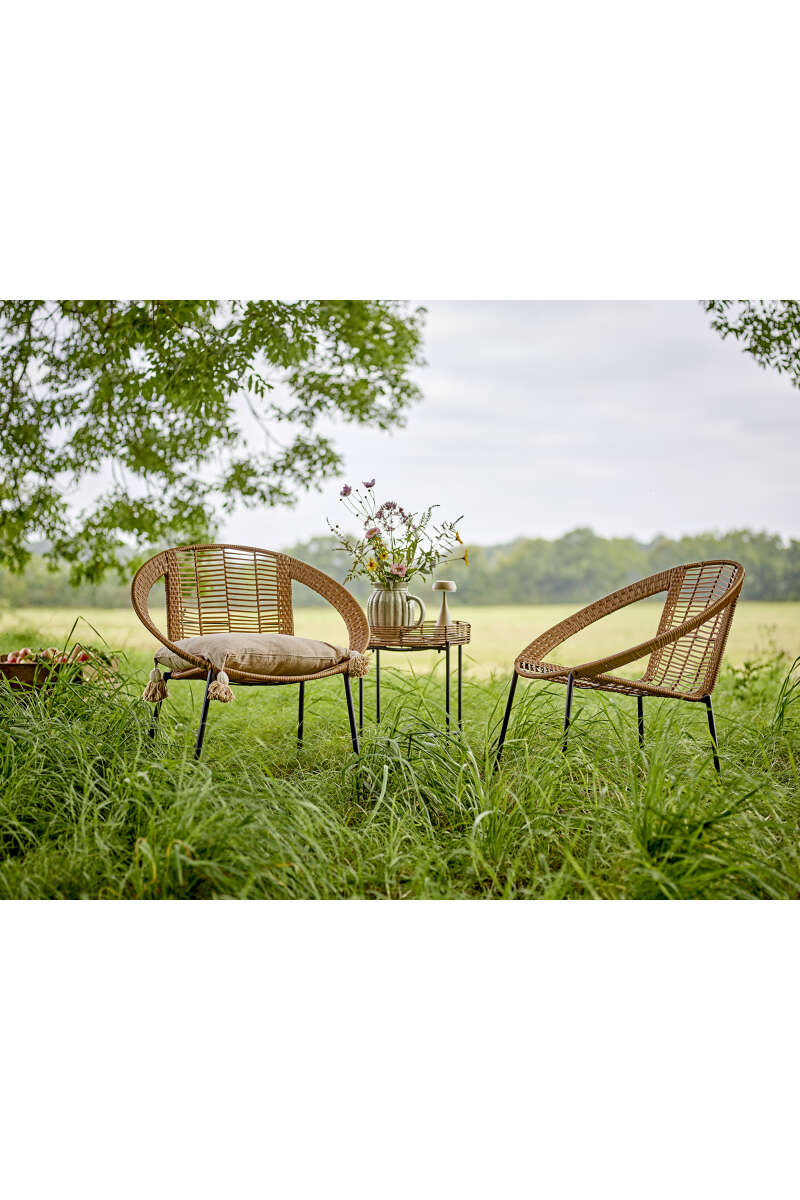 Artikelnummer: 54816Das Dudine Lounge Tischli von Bloomingville besteht aus Polyrattan für Terrasse oder Garten. Der runde Tisch hat eine erhöhte Kante. Gefertigt aus hellbraunem Polyrattan und schwarzem Metall, er hat es ein leichtes und elegantes Erscheinungsbild. Wir empfehlen, Gartenmöbel in überdachten Bereichen zu platzieren, D38xH50 cm.