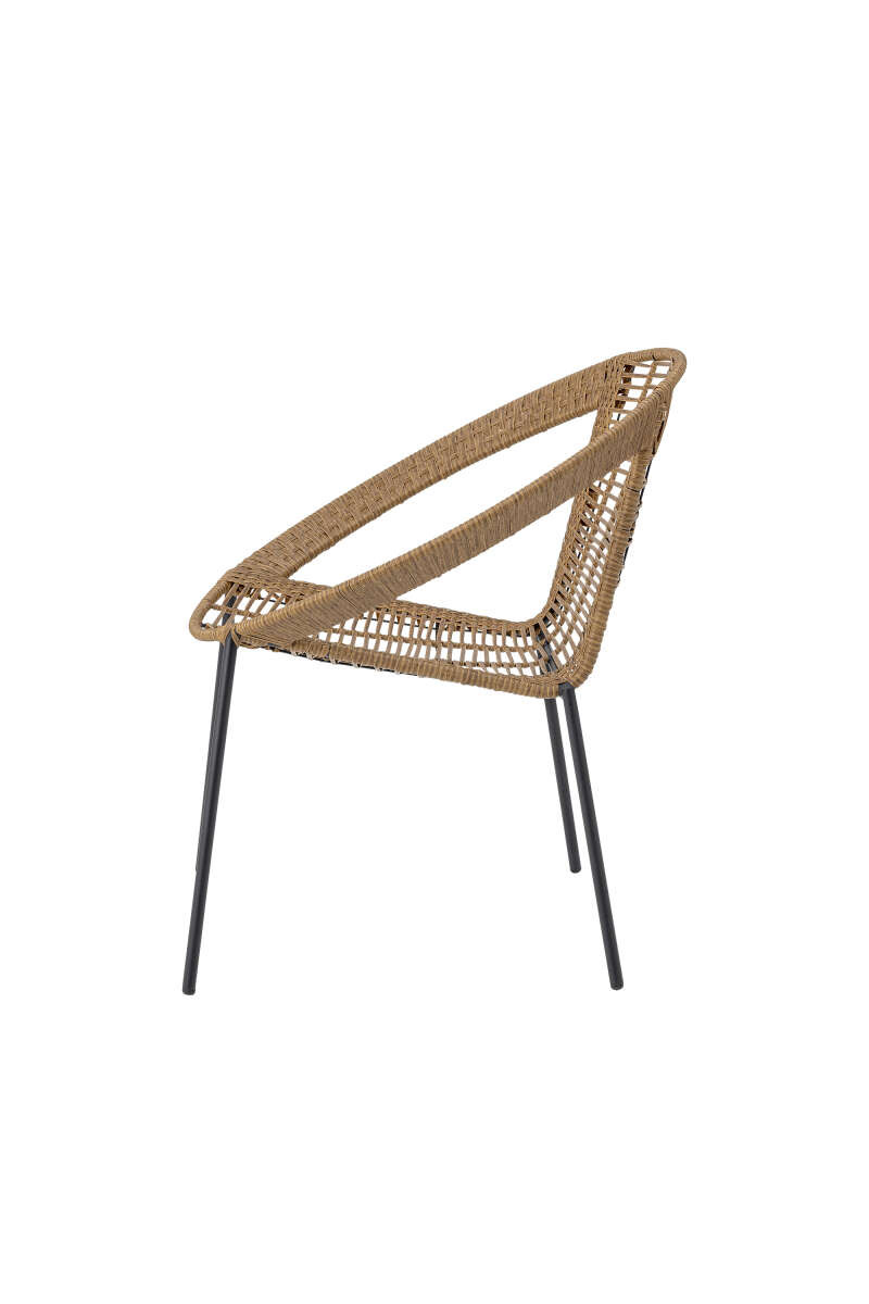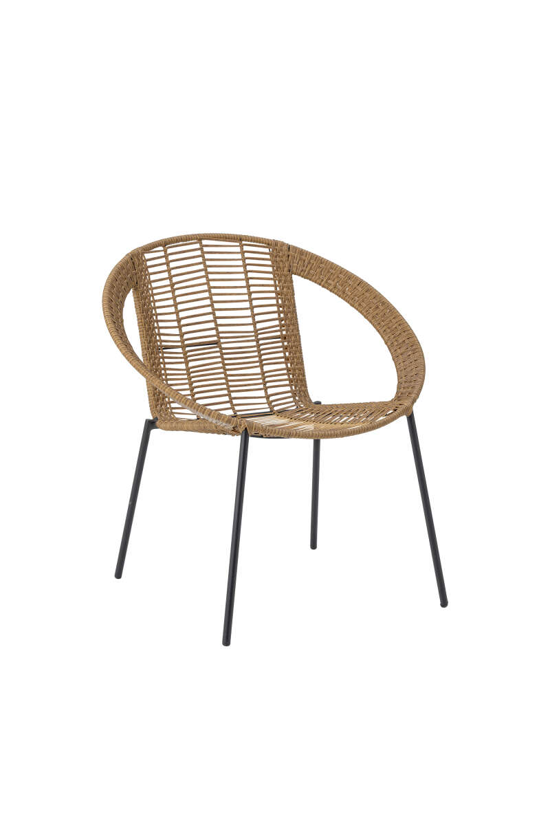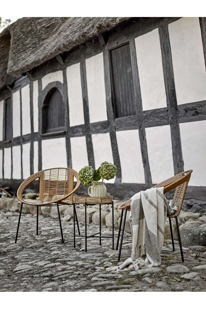 Der Dudine Lounge-Sessel von Bloomingville besteht aus Polyrattan für Terrasse oder Garten. Gefertigt aus hellbraunem Polyrattan und schwarzem Metall, hat er ein leichtes und elegantes Erscheinungsbild. Wir empfehlen, Gartenmöbel in überdachten Bereichen zu platzieren, L62,5xH75xW70cm.
