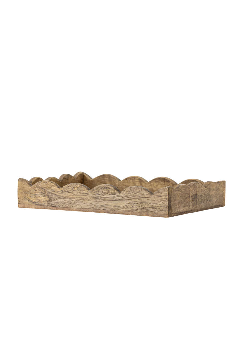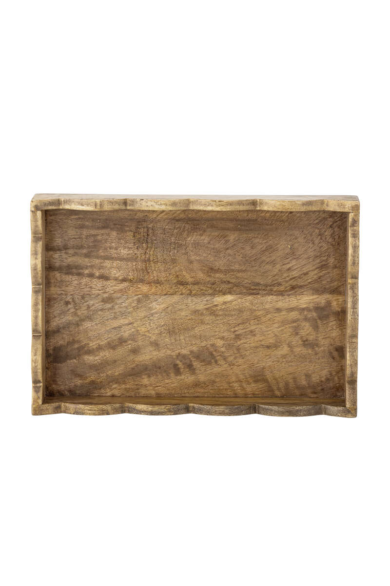 Die Namira Serviertablett von Bloomingville ist aus wunderschönem Mangoholz mit einer natürlichen Optik gefertigt. Das Tablett ist mit gewellten Kanten gestaltet, die ihm einen lebhaften und spielerischen Akzent verleihen. Es ist sowohl dekorativ als auch praktisch und eignet sich perfekt zum Servieren oder als stilvolle Aufbewahrungslösung im Zuhause. L30xH5xW19 cm.