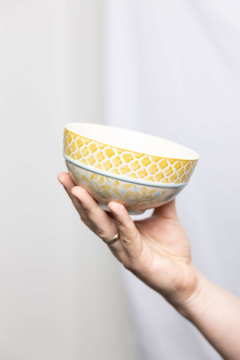 Die Schüssel aus Steingut, 14 x 7.5 cm, eignet sich perfekt für frische Salate, heisse Suppen oder süsse Leckereien. Zusätzliche Produktmerkmale: Handgestempelt, Mikrowellengeeignet, Spülmaschinengeeignet