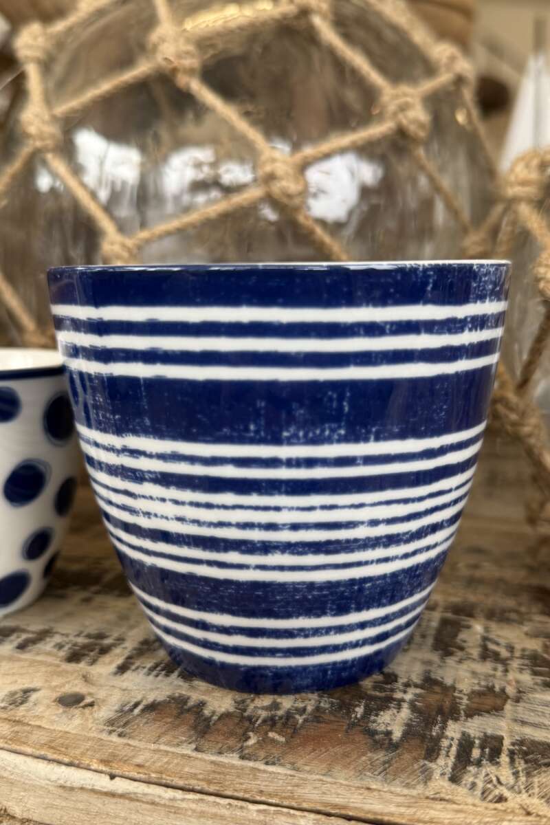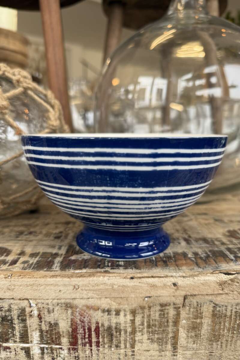 Artikelnummer: 54564Schale aus Steingut, ø15cm. Das langlebige Material aus Porzellan ist spülmaschinen- und mikrowellengeeignet und macht die Reinigung und Verwendung einfach. Verwaschene Streifen auf Marineblau, die ein maritimes Flair verbreiten. Kombinieren Sie dazu Everyday Geschirr in weiß und dunkelblau, um einen schönen Maritimen Look zu schaffen.