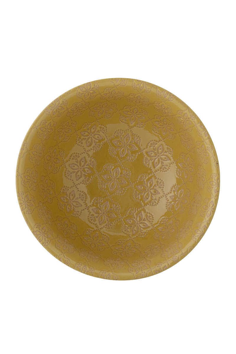 Die Schale Marsala aus der Creative Collection ist glasiert und hat kleine, in einem schönen Muster geprägte Blumen. Die Schale hat eine schöne gelbe Farbe und eignet sich perfekt zum Servieren oder als Frühstücksschale. D15xH7 cm Inhalt, 700 ml, Spülmaschinen und Microwellen geeignet.