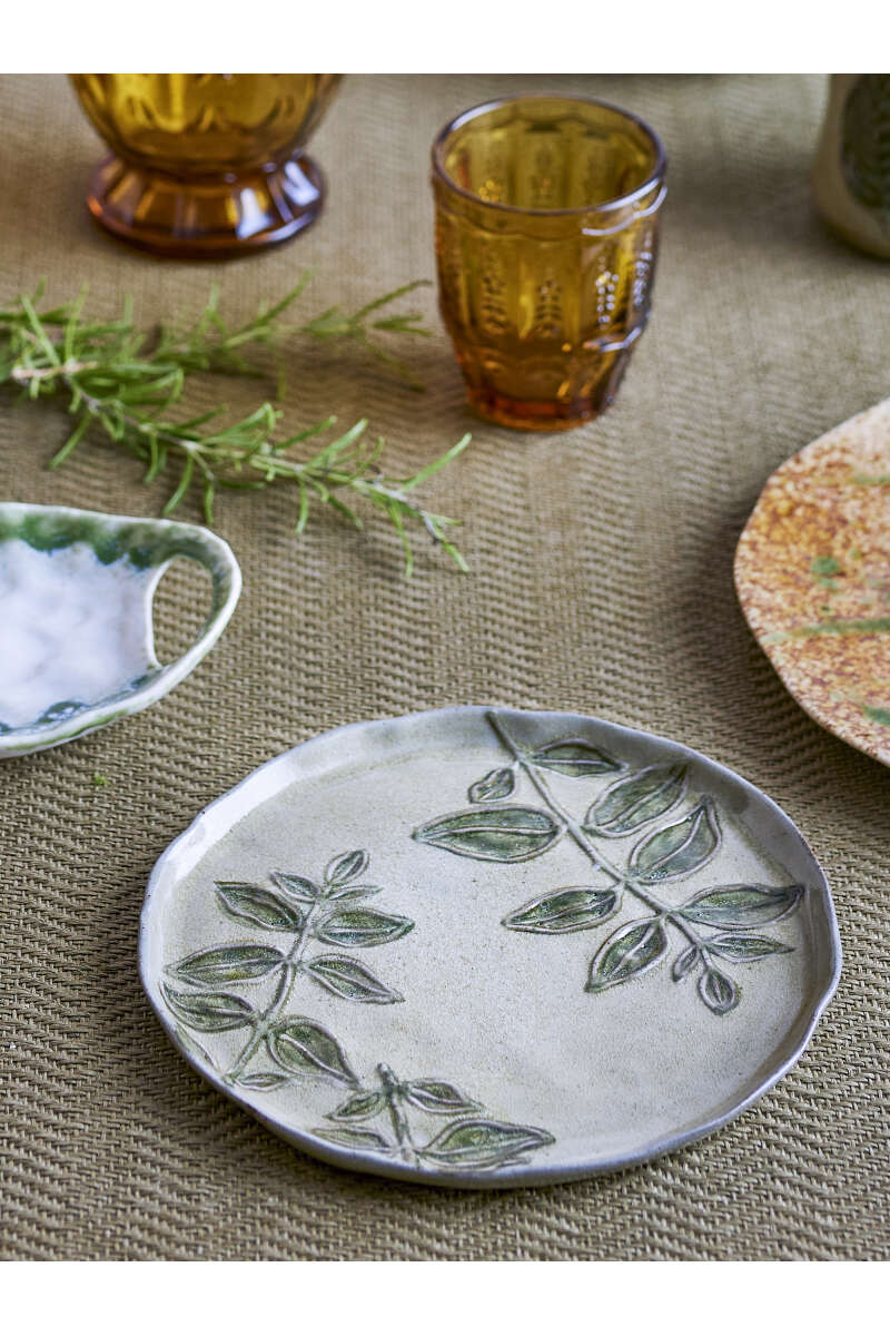 Der Jasper Teller von Creative Collection ist ein schöner Steingutteller, handdekoriert mit natürlichen Blattmotiven. Der Teller verleiht Ihrer Tischdekoration eine organische und rustikale Note und bringt die Natur ins Haus. Jeder Teller zeichnet sich durch einzigartige Details aus, die das handgefertigte Design betonen und ihn zu einer dekorativen Ergänzung sowohl für den täglichen Gebrauch als auch für festliche Anlässe machen. D21,5xH1,5 cm, Spülmaschinen geeignet.
