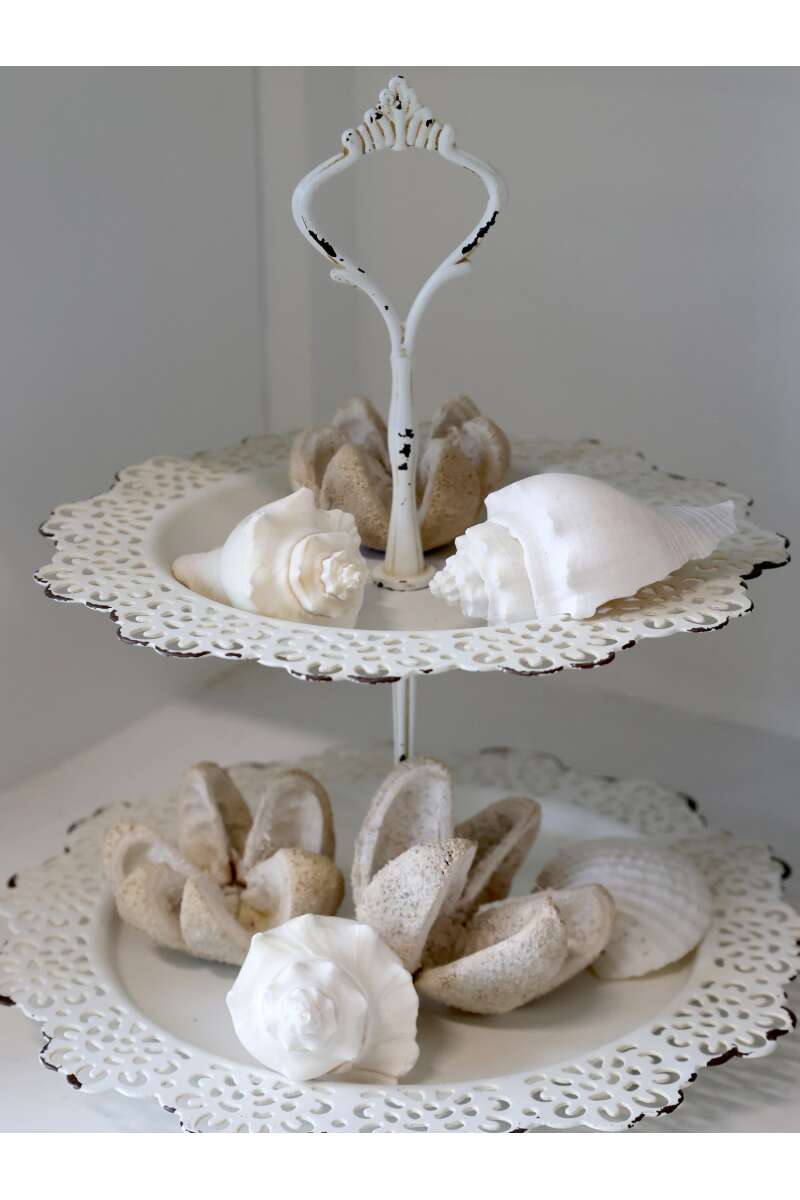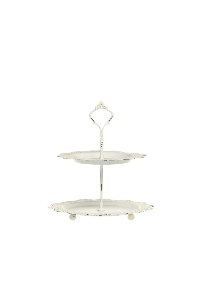 Artikelnummer: 5321853218: Etagere mit Spitzenkante H25.5cmEtagere aus Metall, H25,5/D21,5 cm, in antique Creme, nicht für Früchte geeignet.