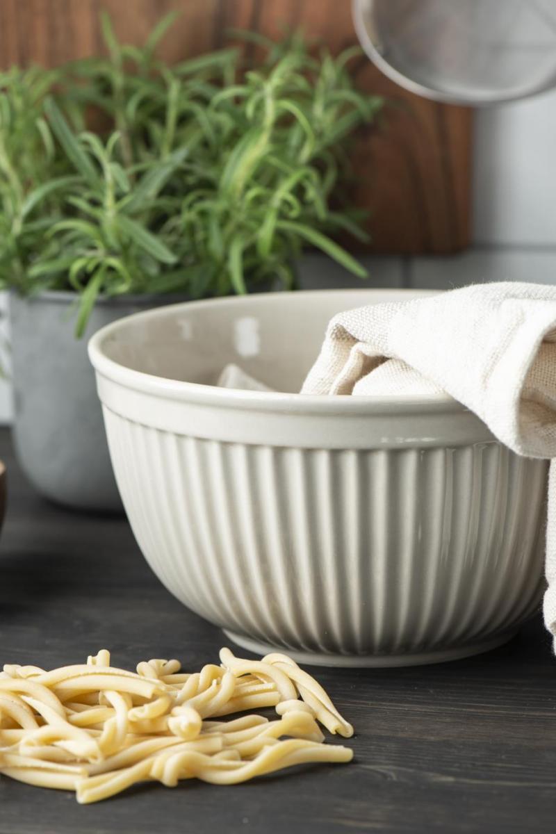 Eine Schüssel aus Steingut, Innen beige Glasur, Ofen, Mikrowelle und Spülmaschinen geeignet,H: 14 Ø: 26cm . IB Laursen