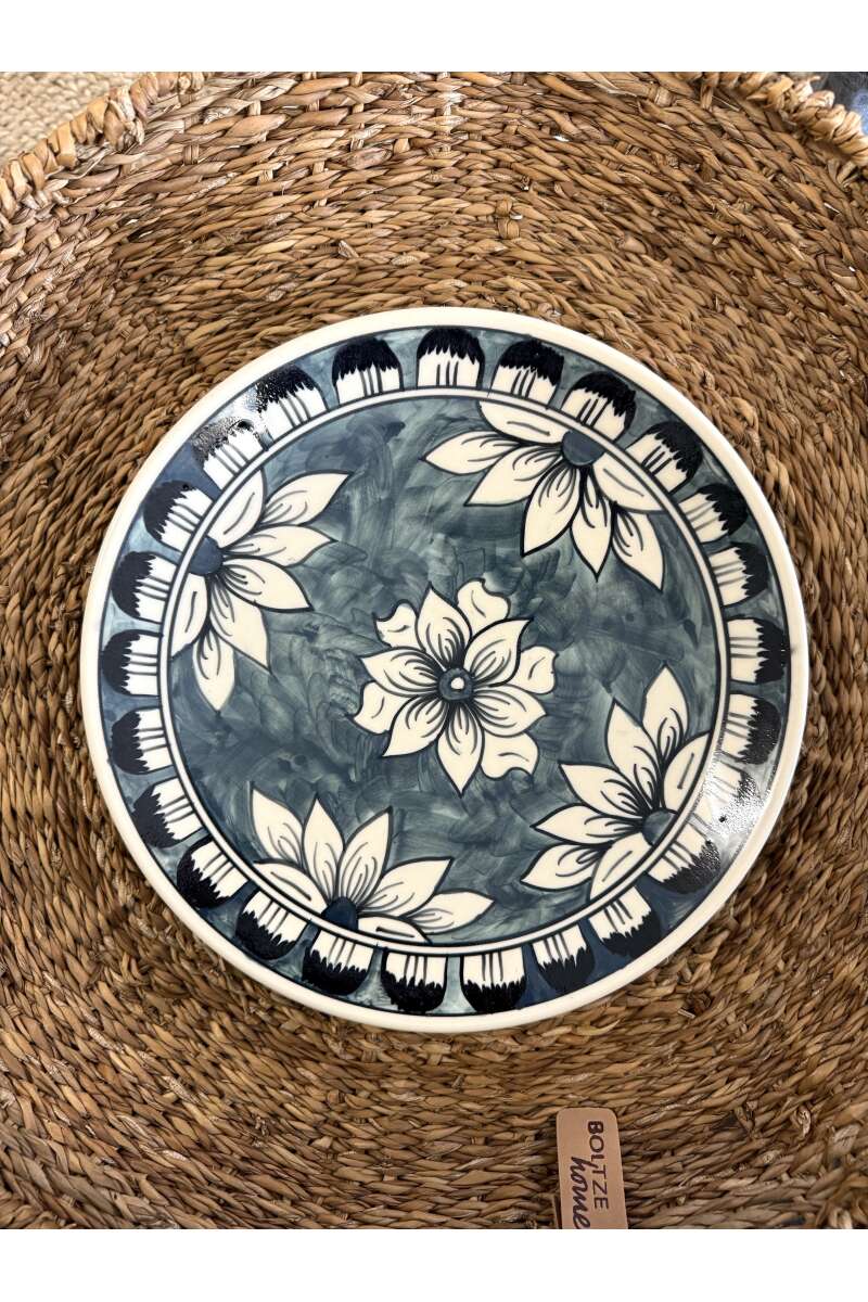Der Karlie Teller von Creative Collection ist ein dekorativer Essteller aus Steingut und handbemalt in einem schönen Muster. Das faszinierende Muster ist inspiriert von der Asthetik des Mittelmeers in einer tiefblauen Farbe und einem botanischen Motiv. Jeder Teller wird aufgrund der Beschaffenheit der Glasur und der handgefertigten Technik einzigartig sein, und es können kleine Variationen auftreten, ø27,5xH2,5 cm.