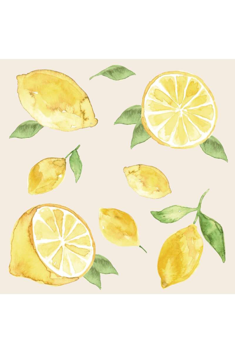 Wunderschöne Papierserviette, verziert mit nachgedruckten Aquarellmotiven von Zitronen, kreiert von unserer talentierten hauseigenen Designerin. Das handgemalte Aussehen und die leuchtenden gelben Farbtöne verleihen der Serviette einen frischen, einzigartigen und optimistischen Ausdruck, 20 Stück, B: 33cm / L: 33cm.