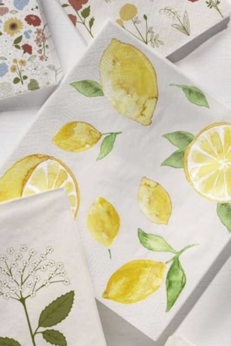 Artikelnummer: 53336Wunderschöne Papierserviette, verziert mit nachgedruckten Aquarellmotiven von Zitronen, kreiert von unserer talentierten hauseigenen Designerin. Das handgemalte Aussehen und die leuchtenden gelben Farbtöne verleihen der Serviette einen frischen, einzigartigen und optimistischen Ausdruck, 20 Stück, B: 33cm / L: 33cm.