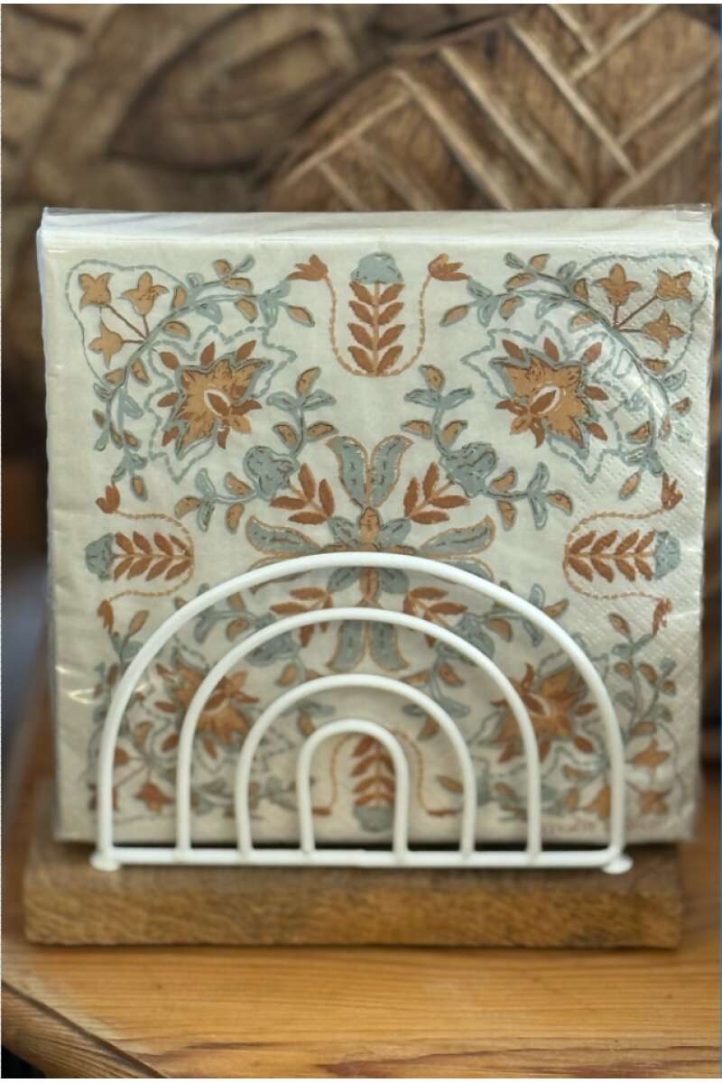 Serviettenhalter aus Holz und Metall, 15x7x10,5cm.