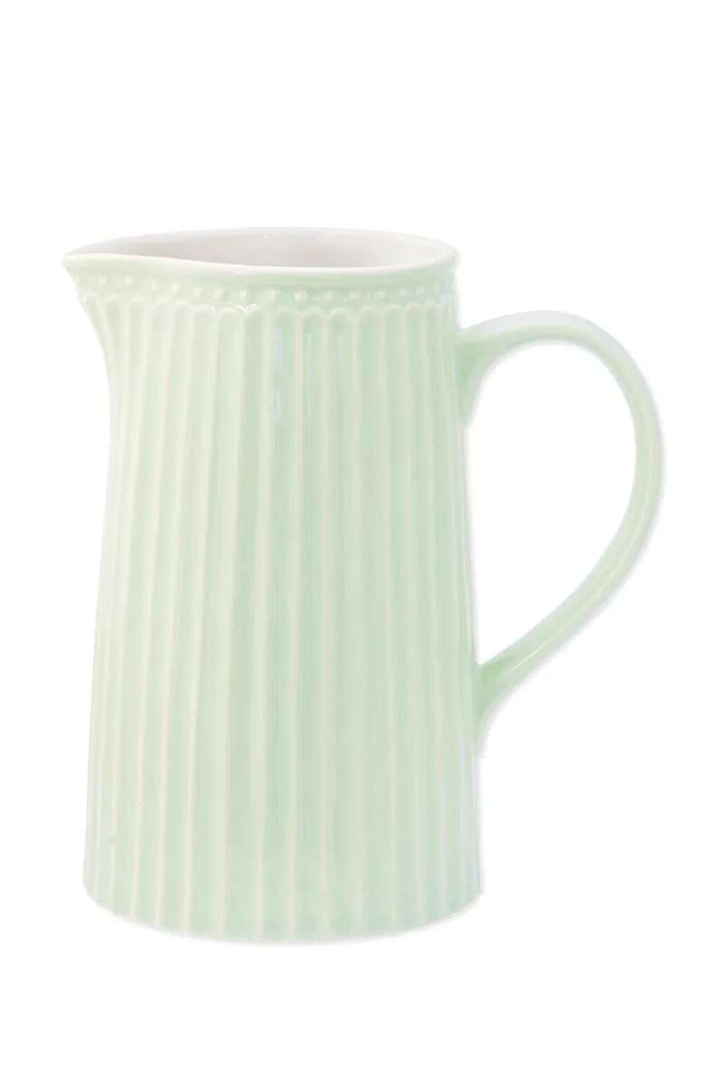 Artikelnummer: 54455Krug Alice, 1 Liter, Höhe ca. 17,5 cm, Durchmesser ca. 10,5 cm, Breite mit Henkel und Ausgiesser ca. 16 cm. Aus Steingut, spülmaschinenfest, geeignet für Mikrowelle, nicht geeignet für Backofen.