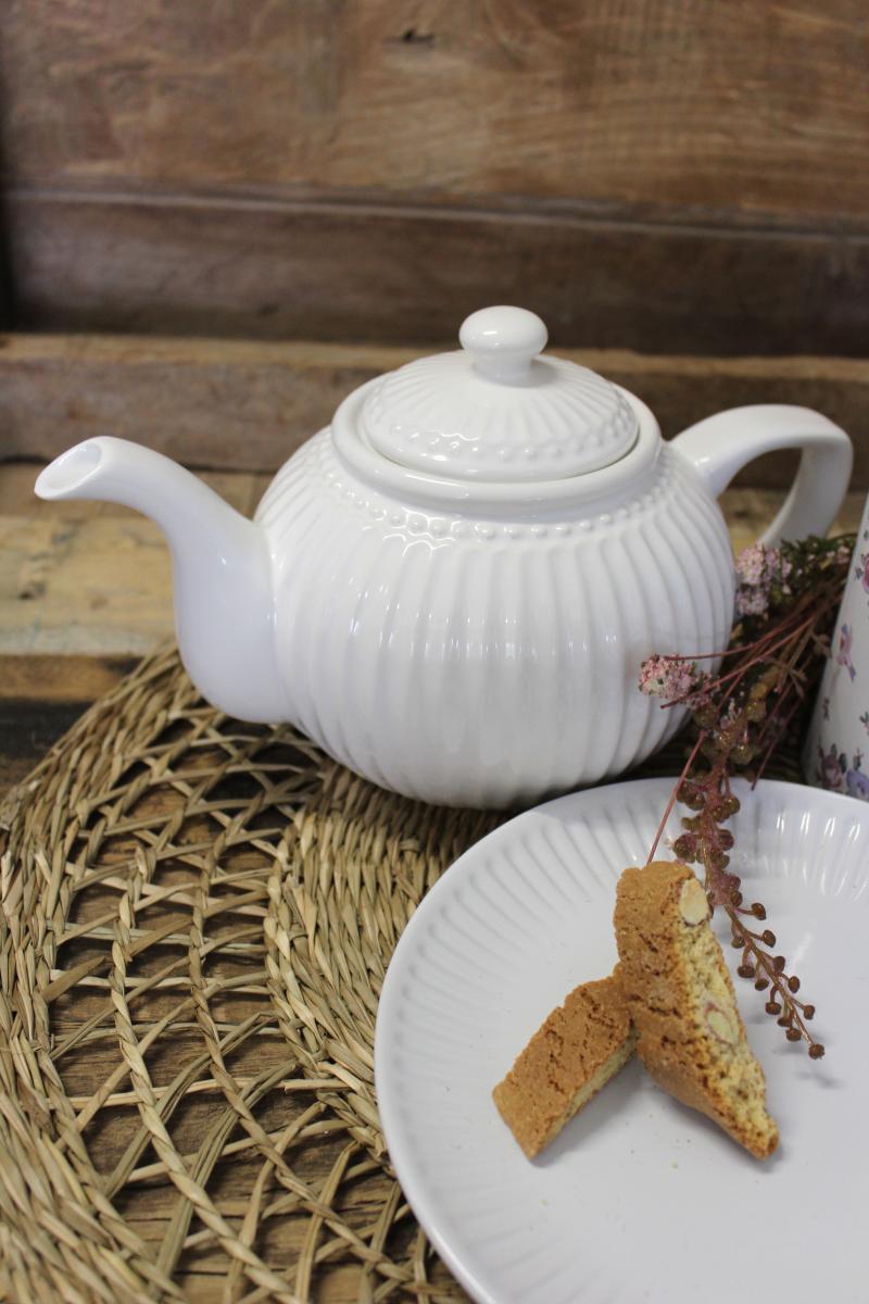 GreenGates grosse Tasse Alice weiss ist eine elegante Tasse aus robustem Steingut. Sie ist perfekt für Tee oder einen feinen Milchkaffee. Sie ist spülmaschinen- und mikrowellengeeignet, 9xø11,5cm, 400ml.