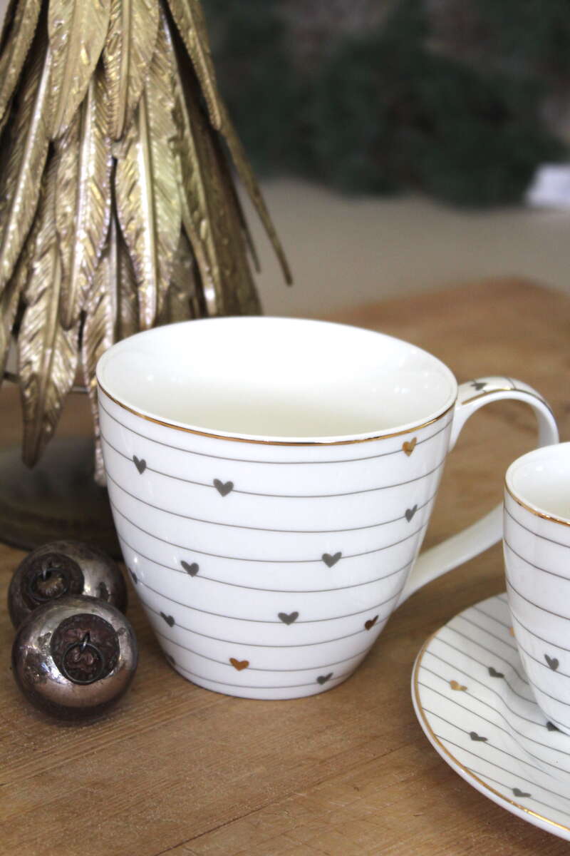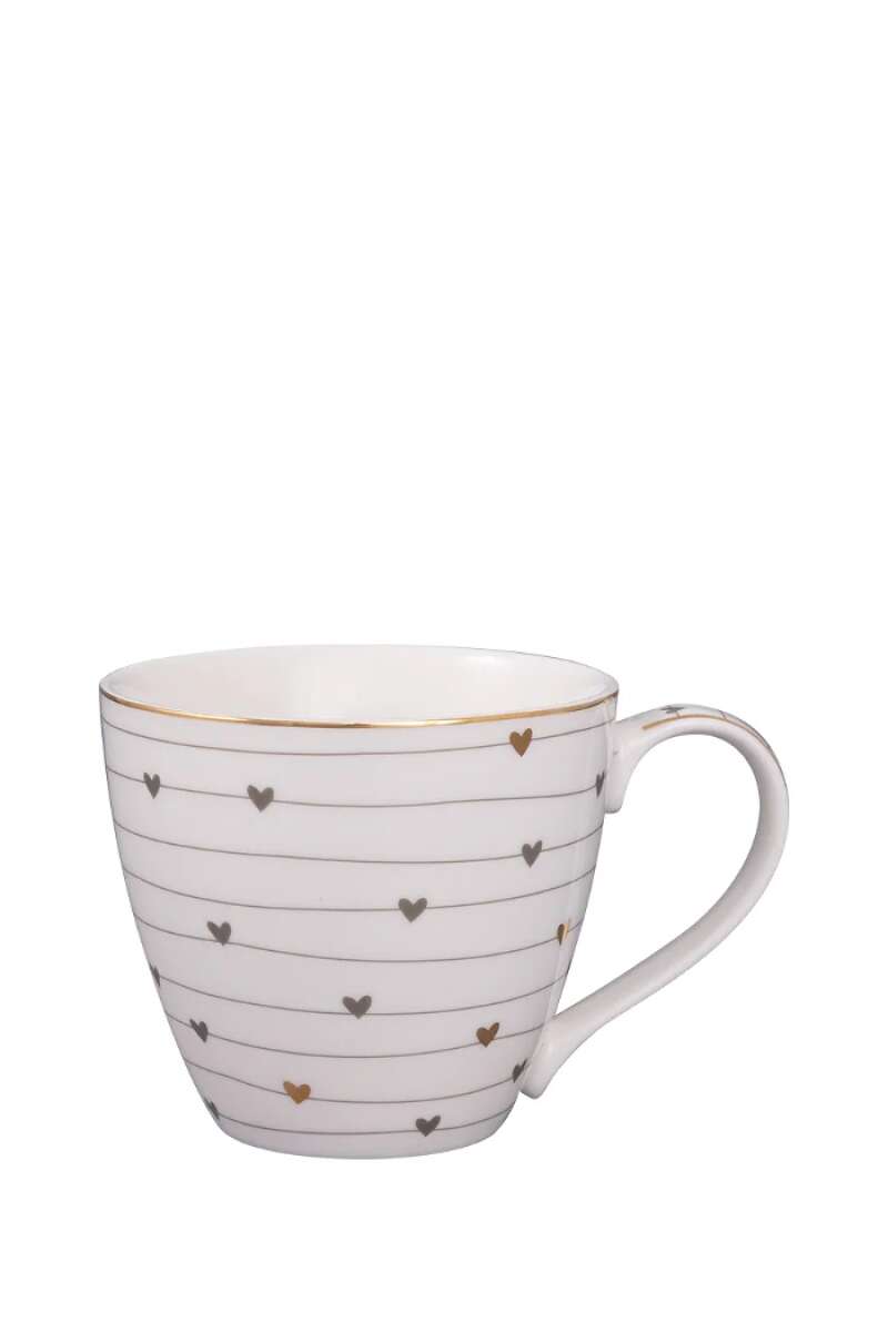 Tasse Grace weiss, Material: Steingut, Höhe: 9 cm, Durchmesser: 10 cm, 350ml. Spülmaschinenfest, geeignet für Mikrowelle, nicht geeignet für Backofen. Von Greengate.