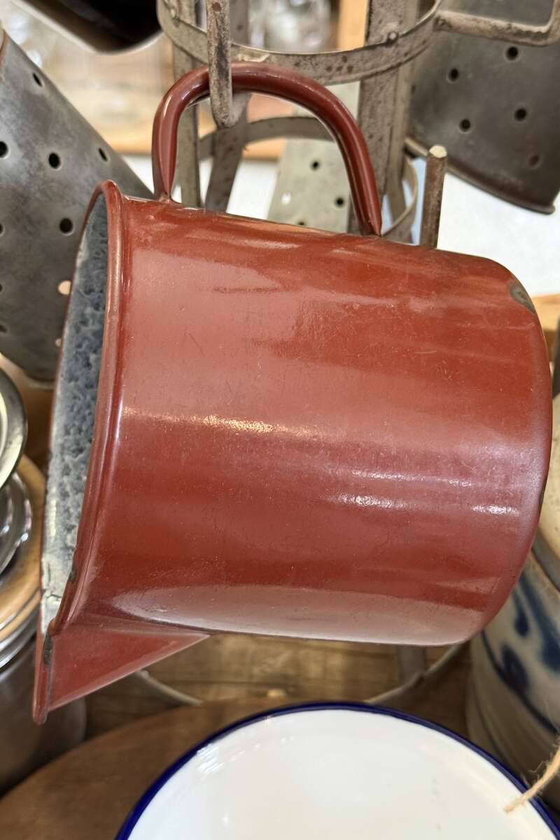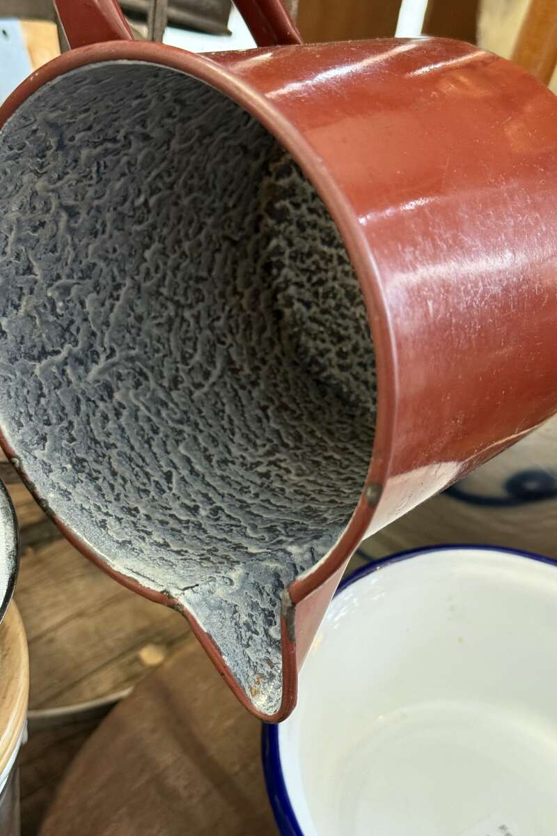 Artikelnummer: 29024Emailliertes Metall mit Abplatzer und Rostflecken ø 13 x 12 cm