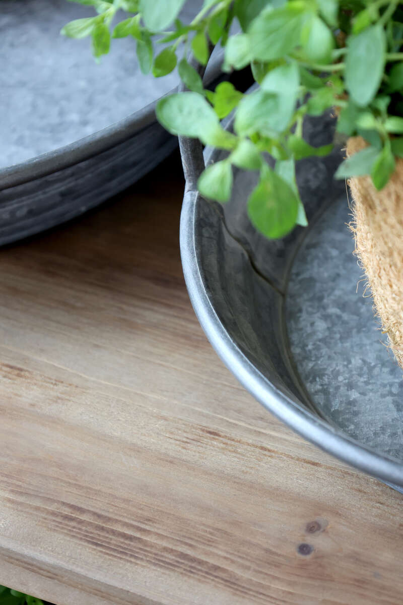 Artikelnummer: 54814Tablett mit Griff, Metall, H19/D28 cm antique zink.