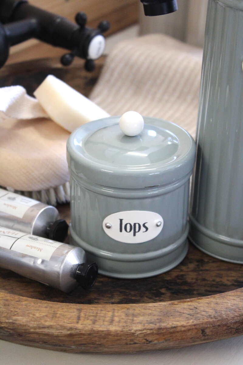 Artikelnummer: 53739Runde Dose in Grün,Ø 9,5 x H 15 cm, mit einem Schild in Weiss mit dem Text Tee. Aus der Dosenserie Hugo. Die Dosen sind handgefertigt, was bedeutet, dass Unregelmässigkeiten, kleine Fehlerli und Unterschiede auftreten können. Nicht spülmaschinenfest.