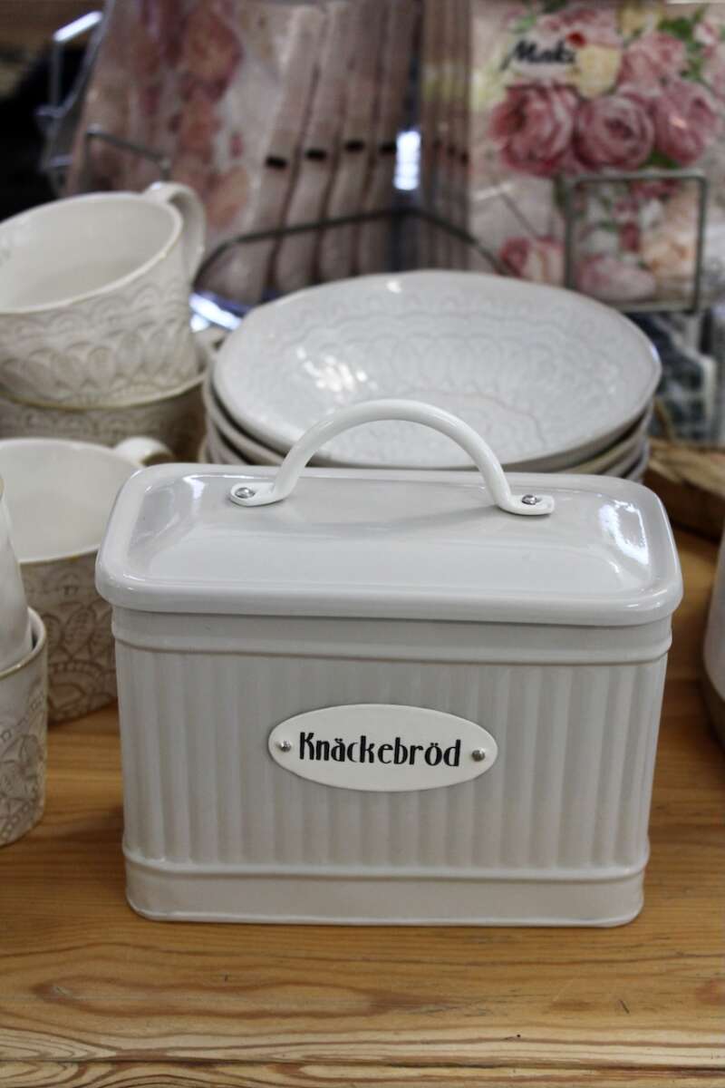 Artikelnummer: 54220Dose in Beige mit Deckel, mit dem Text Knäckebröd, W 17,5 x D 8 x H 13 cm. Aus der Blechserie Hugo. Die Dosen sind handgefertigt, was bedeutet, dass Unregelmässigkeiten, kleine Fehlerli und Unterschiede auftreten können, nicht luftdicht, von Strömshaga