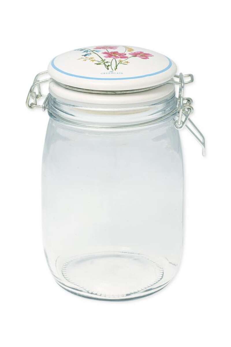 GreenGate Aufbewahrungsglas Elwin 1L ist ein großes Aufbewahrungsglas mit einem Deckel aus massivem Porzellan. Inspiriert von gestutzten Hecken, üppigen Blumenbeeten und duftenden Rosenbüschen: ein englischer Garten in seiner ganzen Pracht. Dieser Artikel ist spülmaschinen- und mikrowellengeeignet.