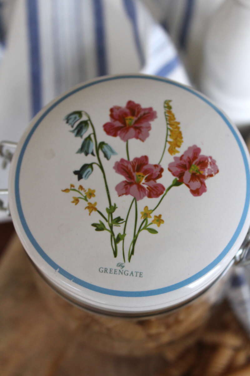 Artikelnummer: 51975GreenGate Aufbewahrungsglas Elwin 1L ist ein großes Aufbewahrungsglas mit einem Deckel aus massivem Porzellan. Inspiriert von gestutzten Hecken, üppigen Blumenbeeten und duftenden Rosenbüschen: ein englischer Garten in seiner ganzen Pracht. Dieser Artikel ist spülmaschinen- und mikrowellengeeignet.
