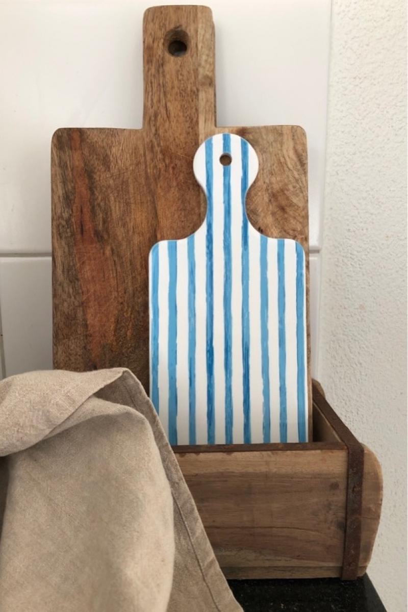 Schneiderbrett aus Keramik, 29x1cm, mit Korkfuss, nicht Spülmaschinen geeignet.