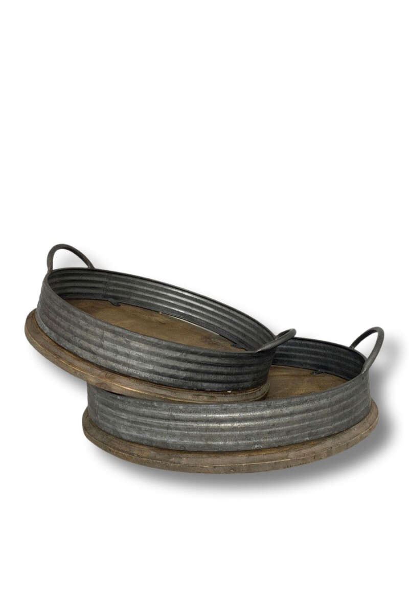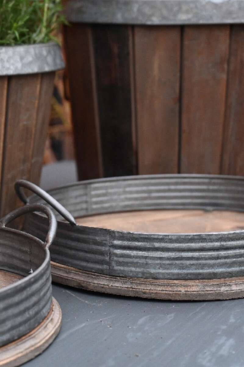Rustikales Tablett aus Holz und Zink, ø31cmx6.5cm hoch
