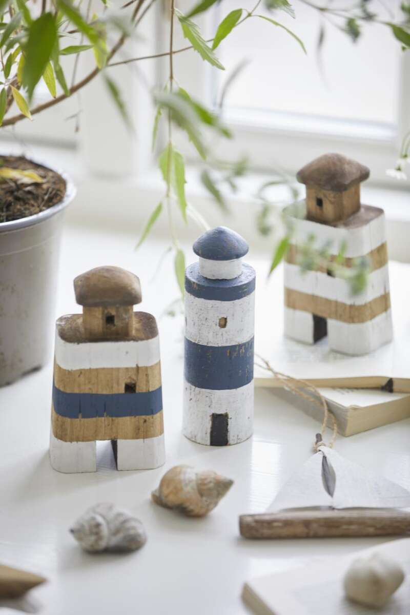 Kleiner süsser Leuchtturm aus recyceltem Holz, B: 5 H: 15 L: 8 cm