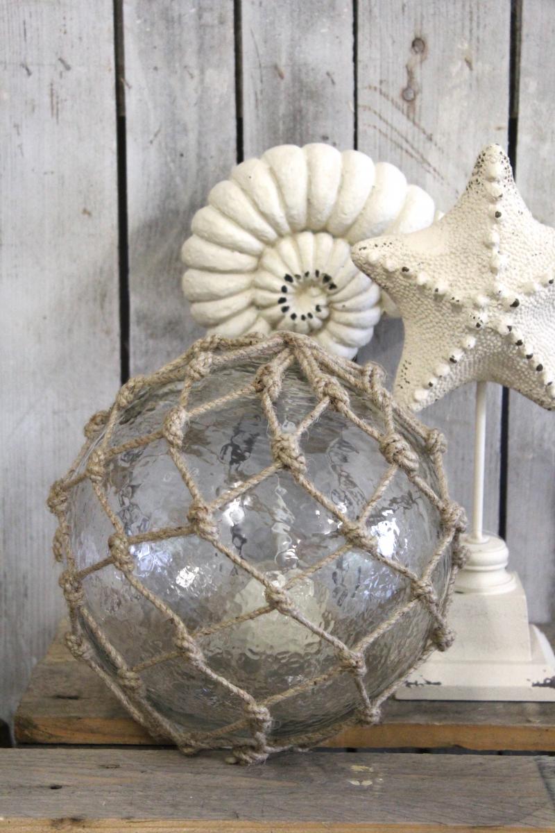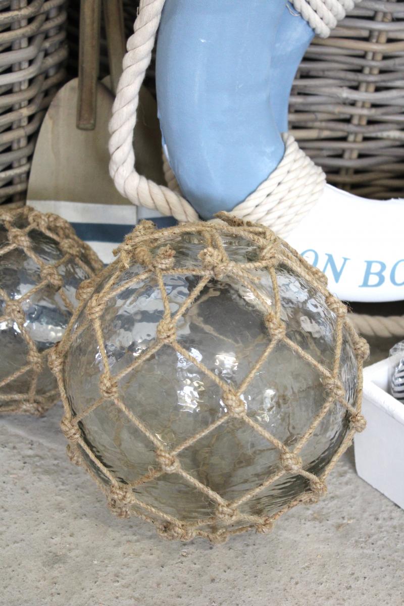 Kugel aus Glas mit Jutenetz,alten Fischerkugeln nachempfunden, diese wurden an die Netze gehängt, als es noch keinen Plastik gab, ø 20cm, von IB Laursen.