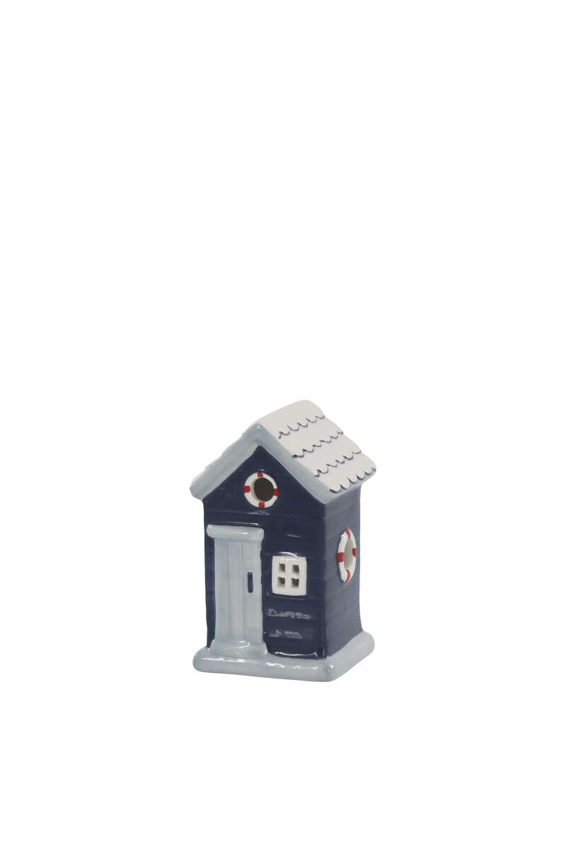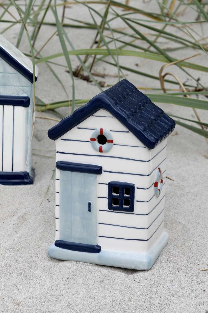 Artikelnummer: 54487Herziges Strandhaus aus Keramik, H10/L6/B6 cm, Ocean Blue und Weiss. Es ist handbemalt, daher kann es zu Unregelmäßigkeiten in der Glasur kommen.