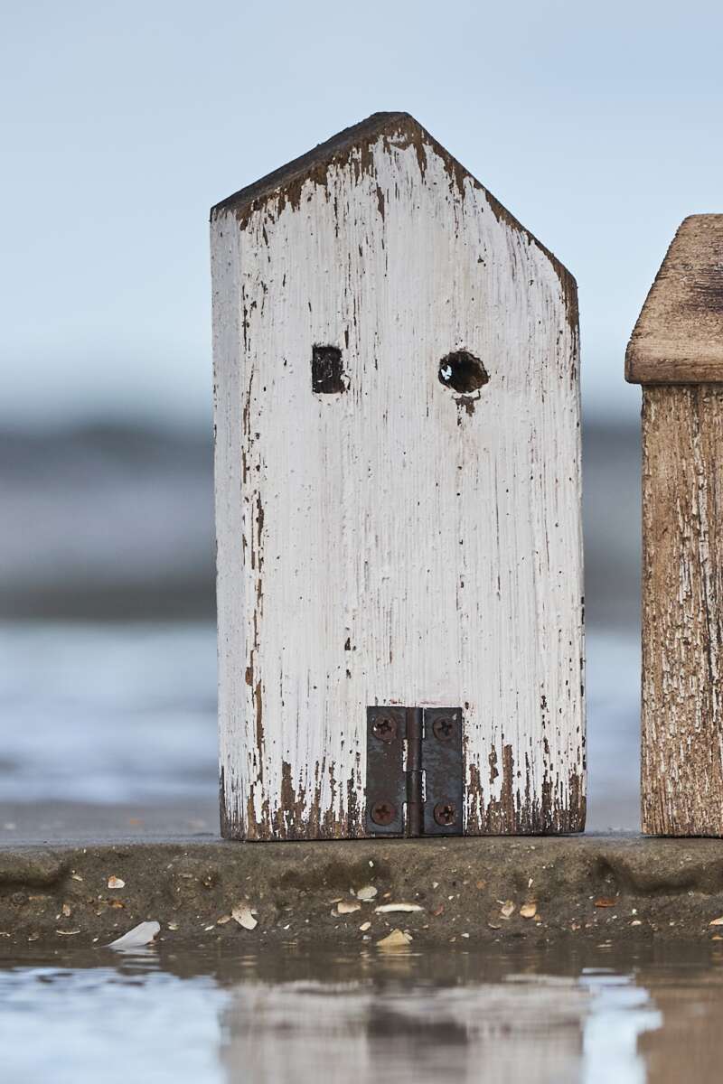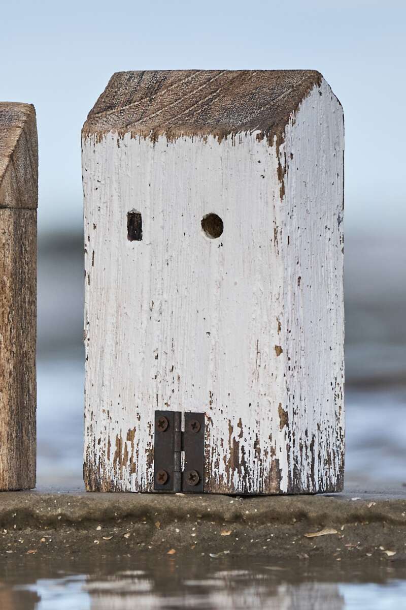 Kleines handgefertigtes Holzhäuschen mit rustikalem, maritimem Ausdruck. Es bringt Ruhe und Küstenflair in Ihr Zuhause oder Ferienhaus – schön einzeln oder zusammen als kleines Küstendorf arrangiert. B: 3,5 H: 14,5 L: 7cm