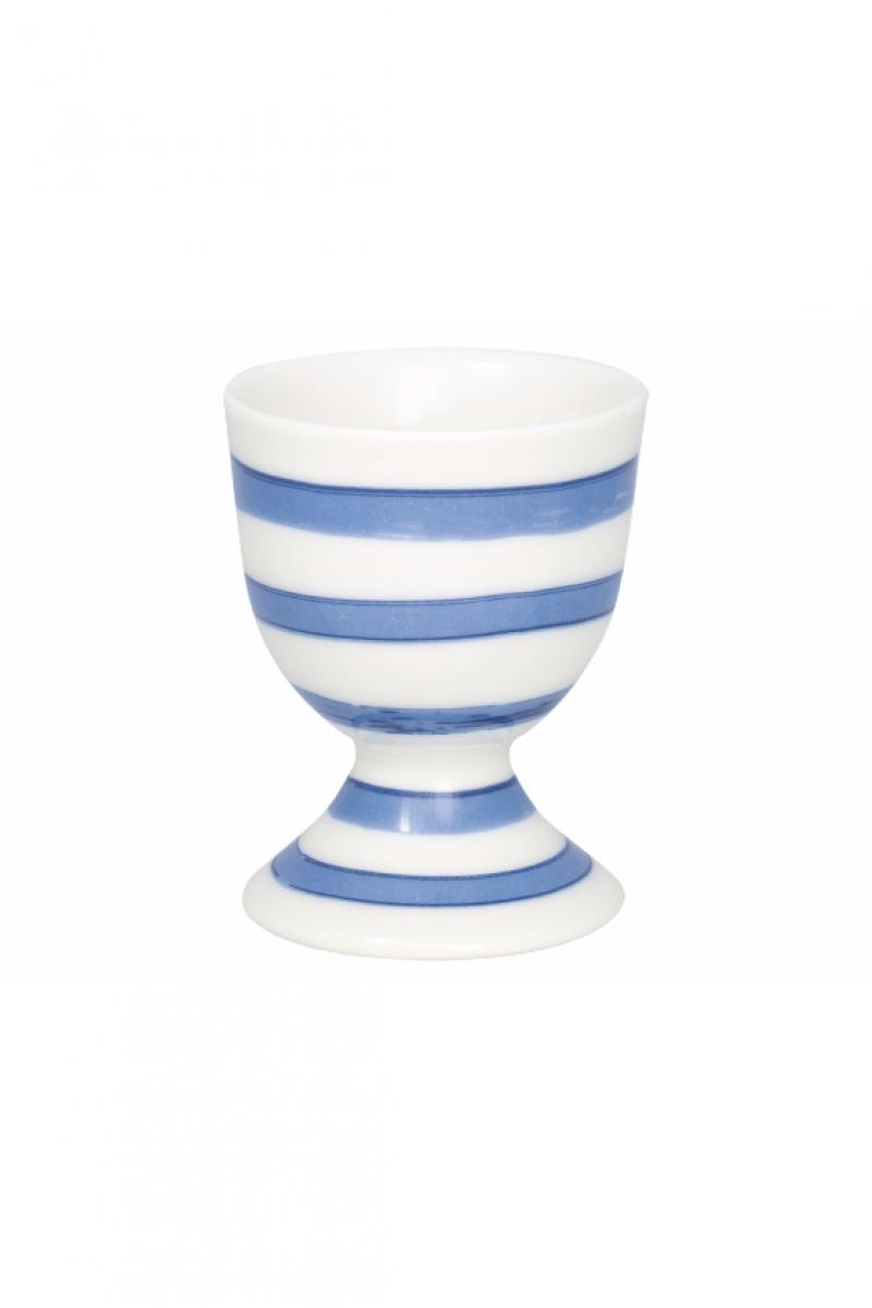 Artikelnummer: 51074Eierbecher Sally, weiss mit blauen Streifen, Höhe ca. 6,5 cm, Durchmesser ca. 5 cm, spülmaschinen- und mikrowellenfest von Greengate.