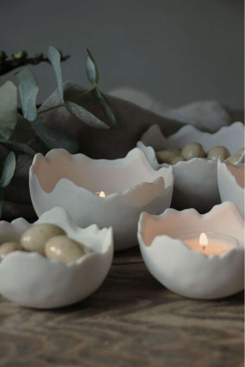 Schöne Eierschalen für Süßigkeiten, Pflanzen und Kerzen, Größe 8x5 cm, Finish: Mattweiße Keramik