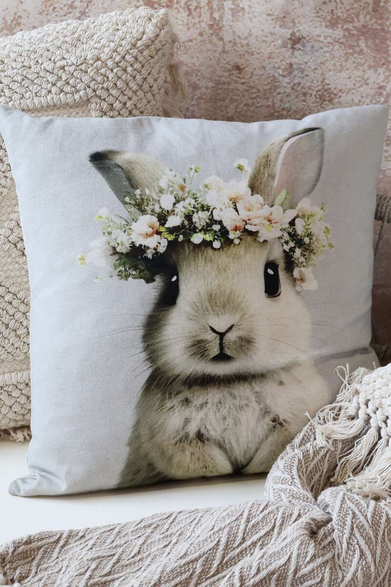 Süsser Kissenbezug mit Häsli, Baumwolle/Leinen, 30 Grad waschbar, 110 Grad bügelbar. (passender Inhalt Artikelnummer: -> 53070 )