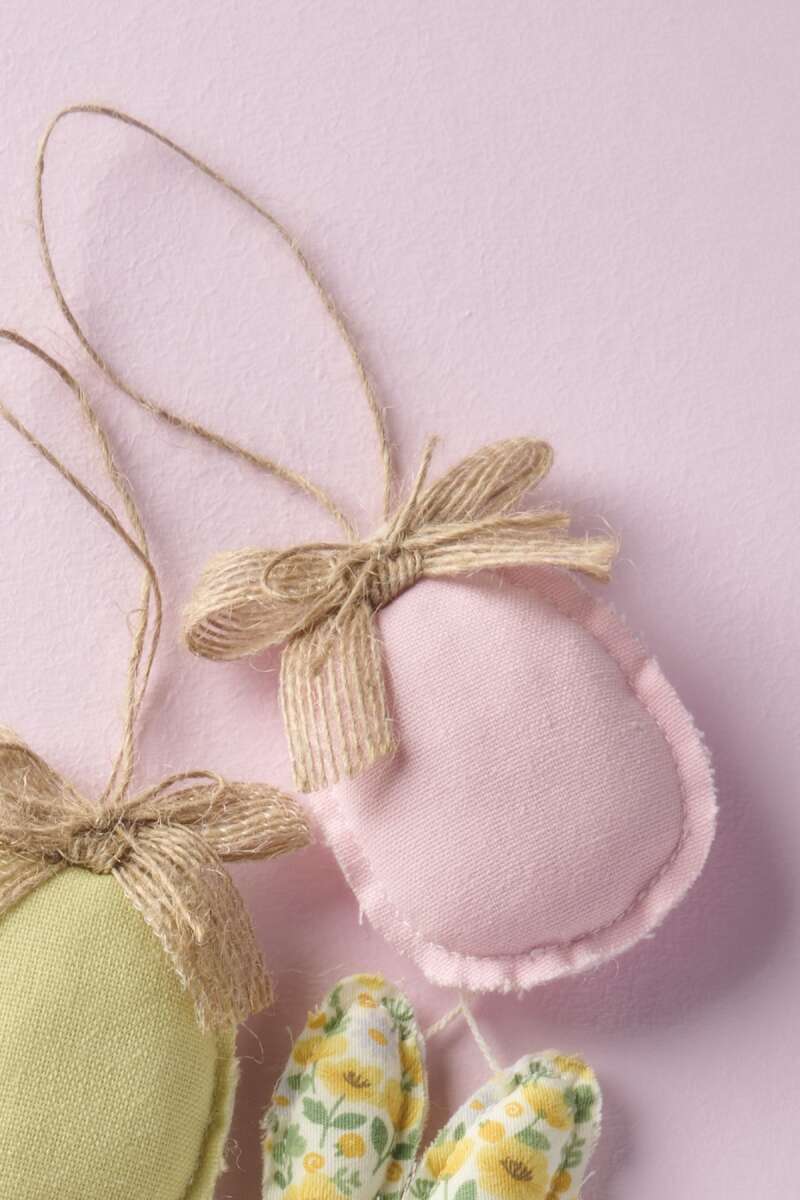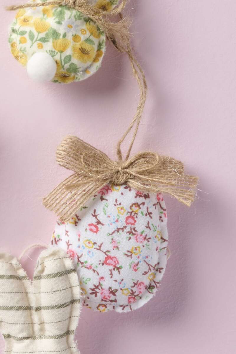 Weiches Stoffei, H8cm, Baumwolle/Polyester/Jute, in frischen Frühlingsfarben – ideal zum Aufhängen an Zweigen, für kreative Osterdekorationen oder als liebevolles Detail im Osterei.