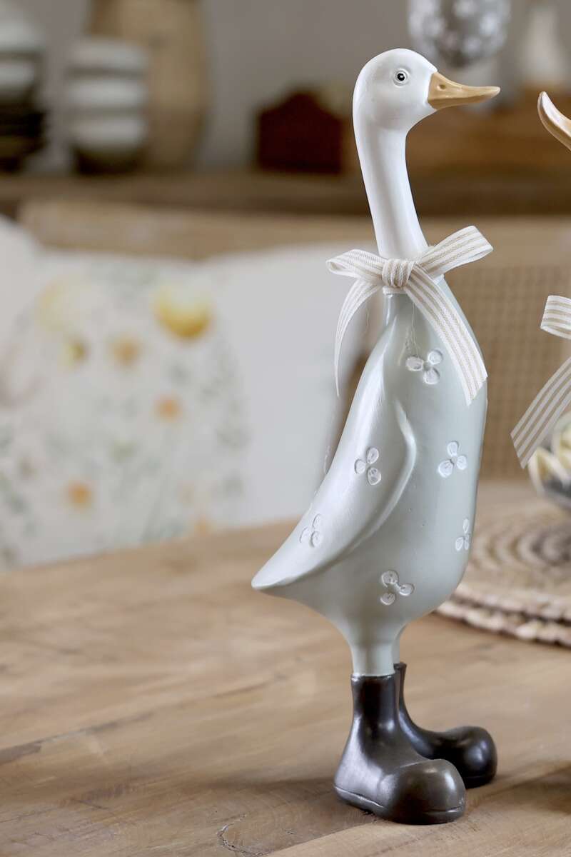 Gans aus Polyresin, H23/L7/B7 cm, Handbemalt, mit Schleife.