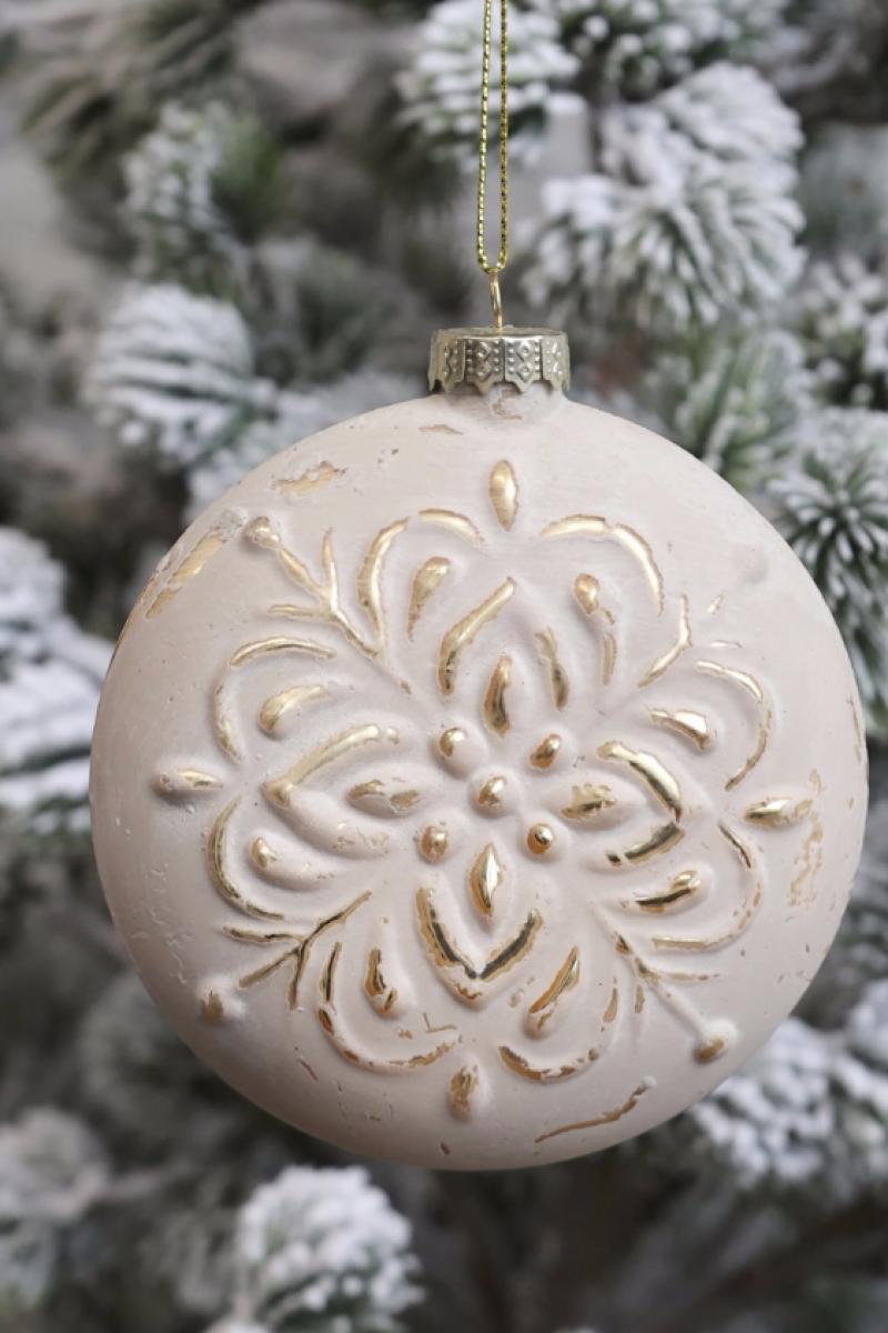 Flache Weihnachtskugel Antik Puder H8cm