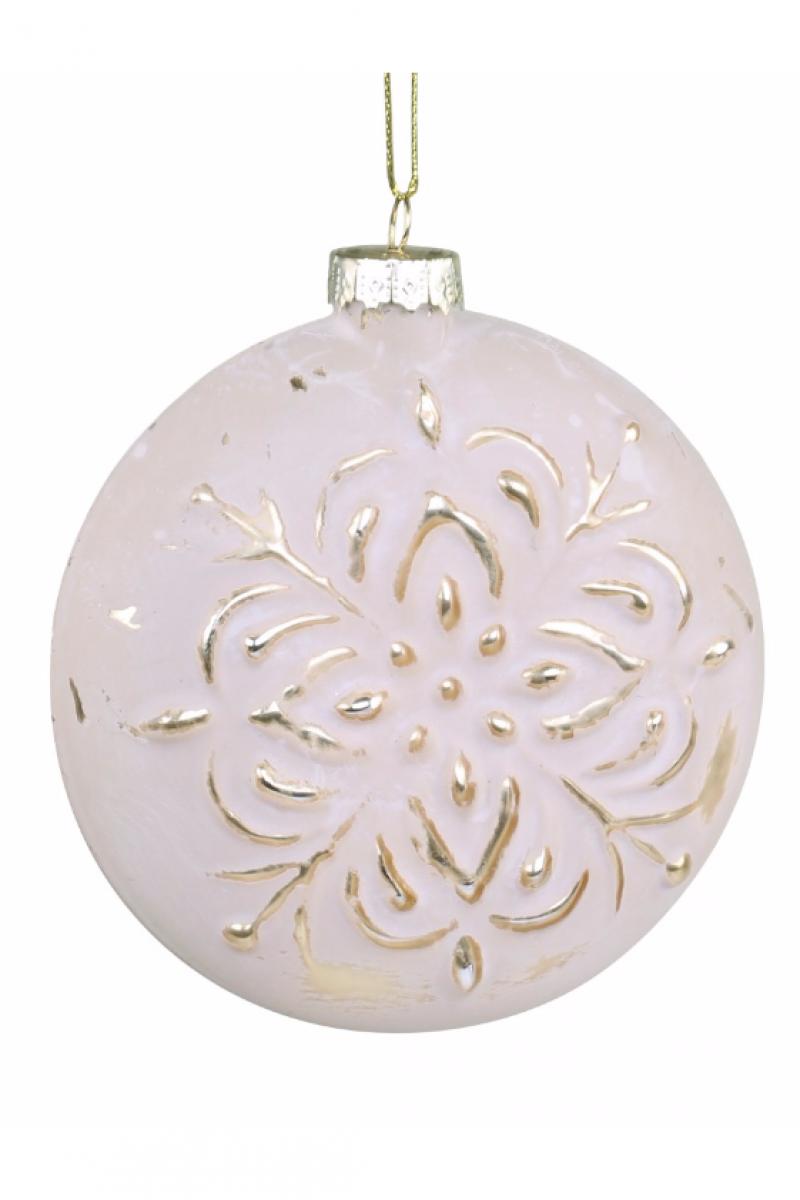 Flache Weihnachtskugel m. Goldmuster, aus Glas,H11/L8/B3,5 cm antique puder, die Kugeln sind handgefertigt und können daher Unebenheiten in der Farbe haben, von Chic Antique.