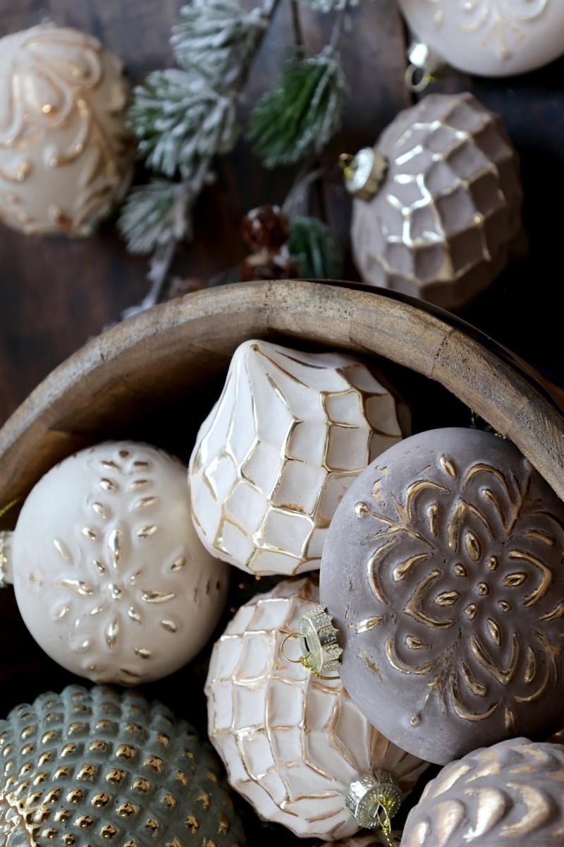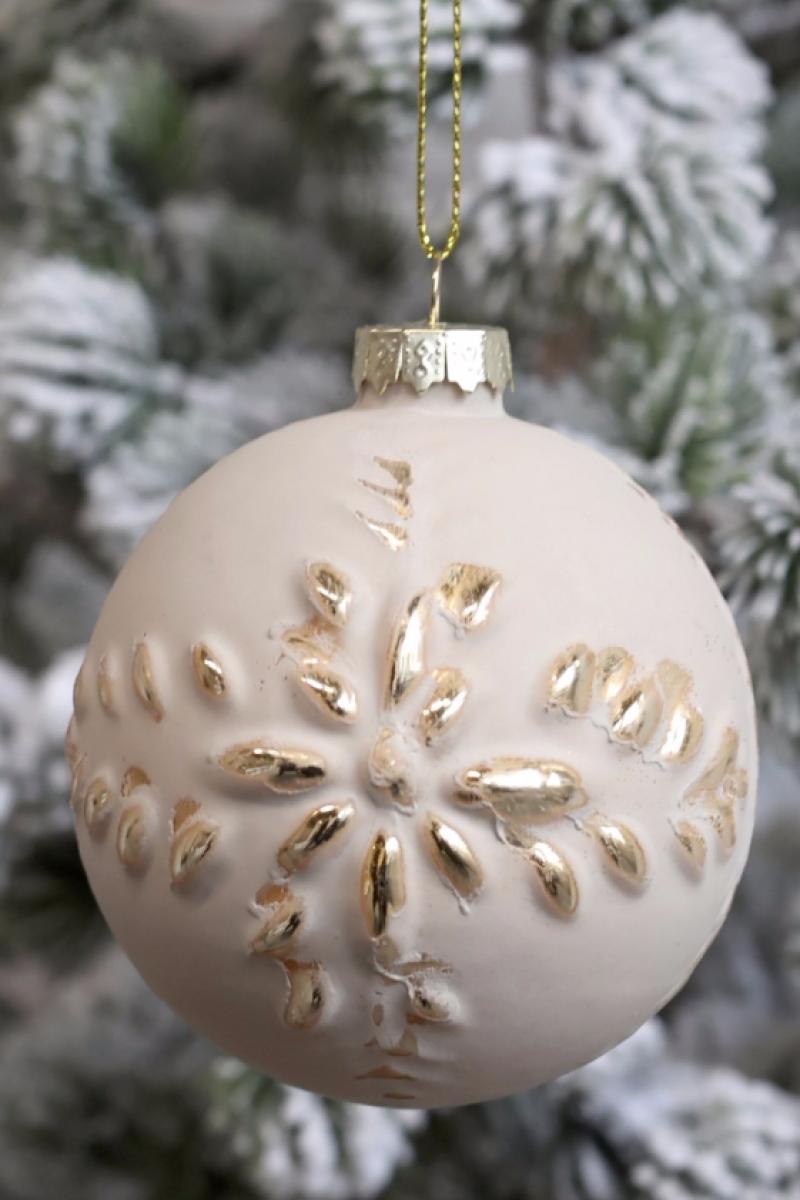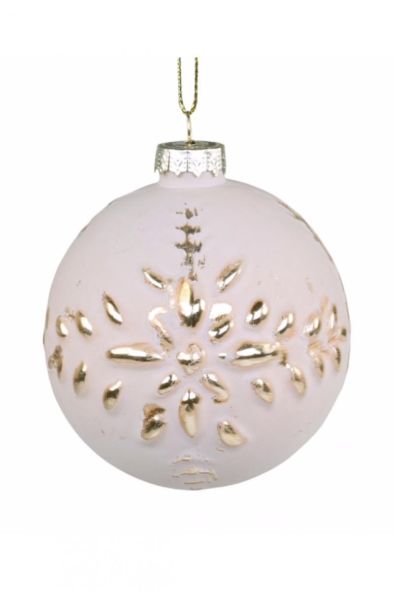Artikelnummer: 50575Weihnachtskugel m. Goldmuster, aus Glas,D8 cm antique puder, die Kugeln sind handgefertigt und können daher Unebenheiten in der Farbe haben, von Chic Antique.