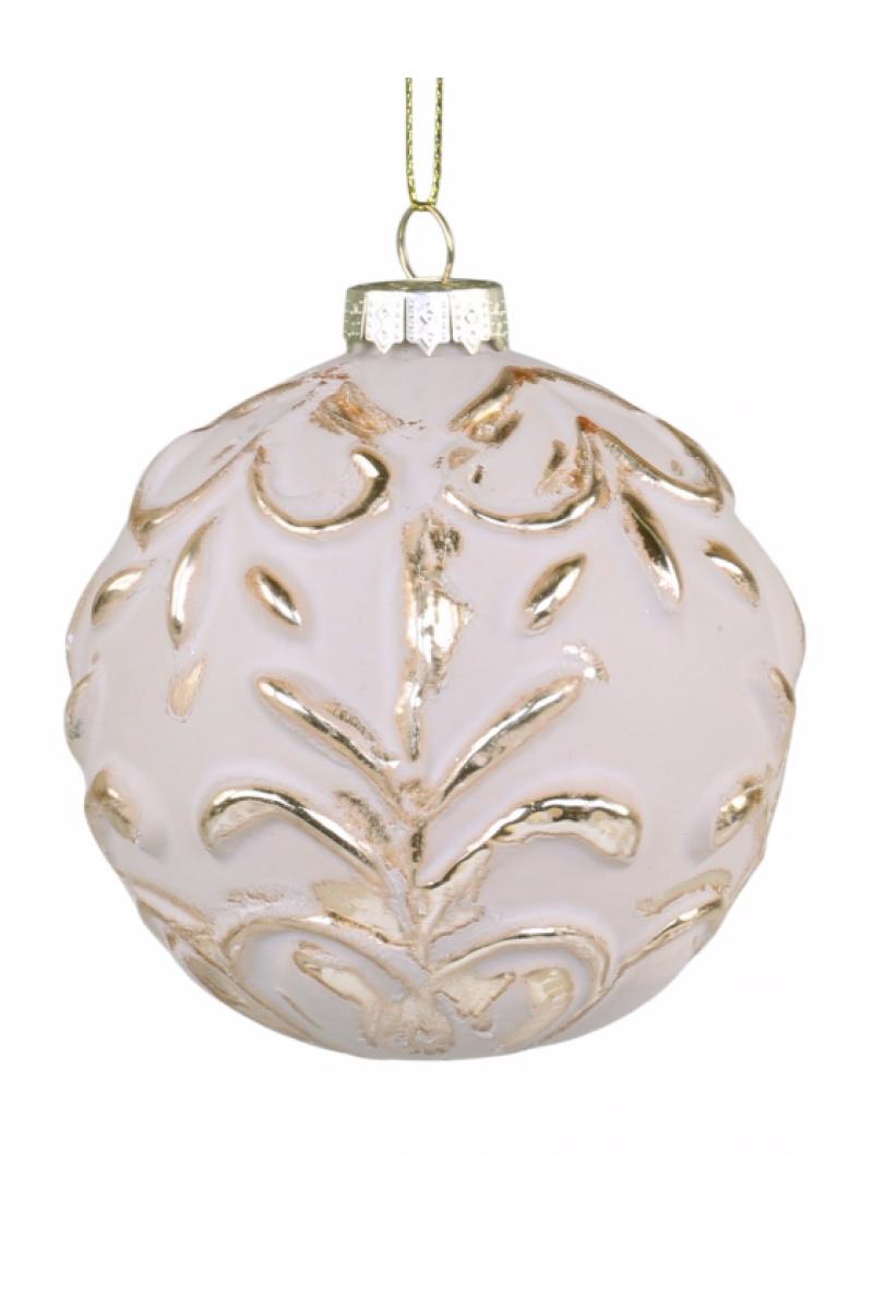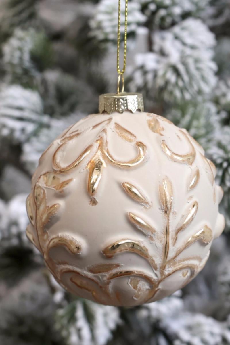 Artikelnummer: 50579Weihnachtskugel m. Goldmuster, aus Glas,D8 cm antique puder, die Kugeln sind handgefertigt und können daher Unebenheiten in der Farbe haben, von Chic Antique.