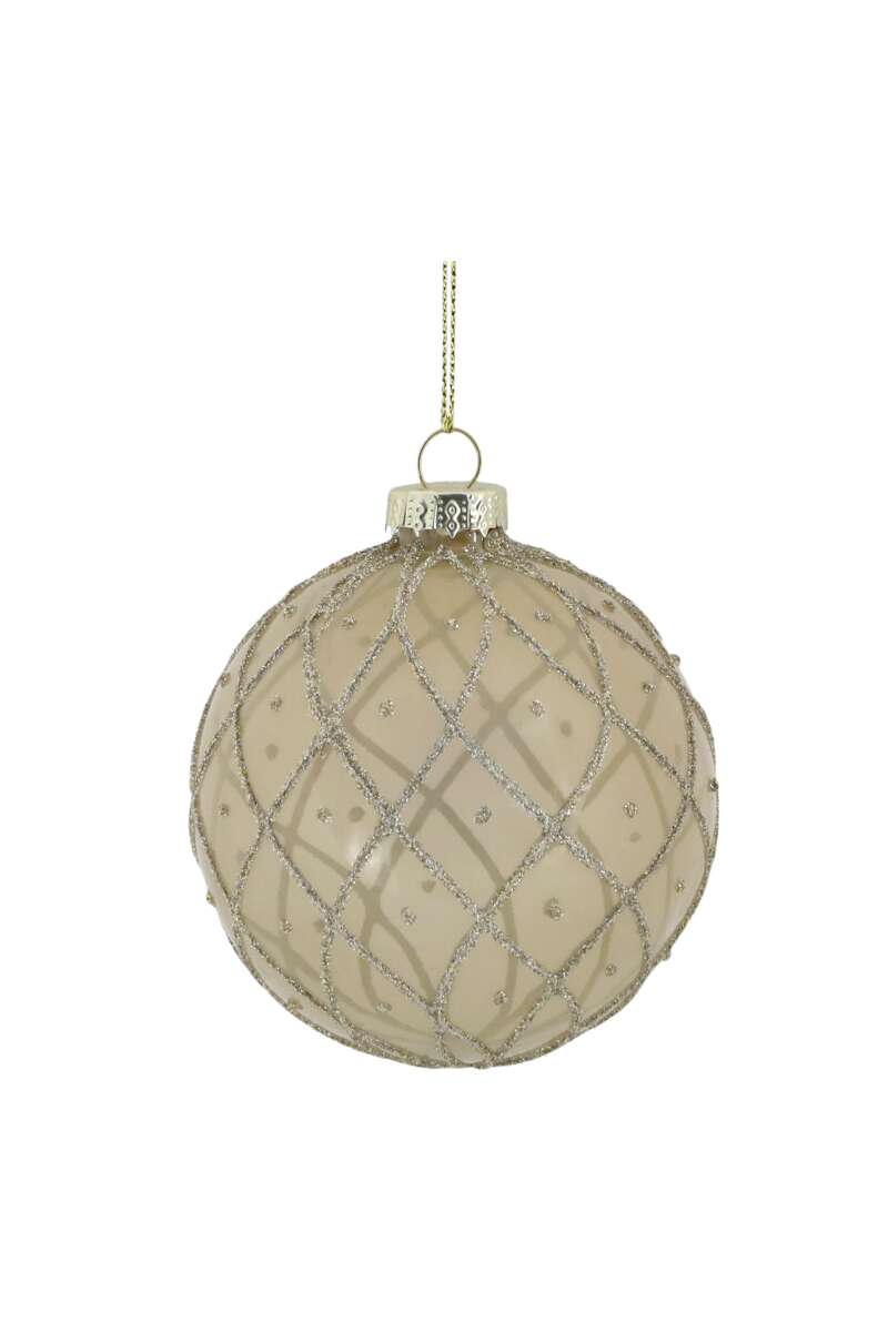 Artikelnummer: 54279Glaskugel mit Glitzer, ø8cm, Beige mit Gold