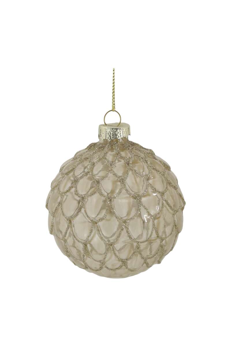 Artikelnummer: 54281Glaskugel mit Glitzer, ø8cm, Beige mit Gold
