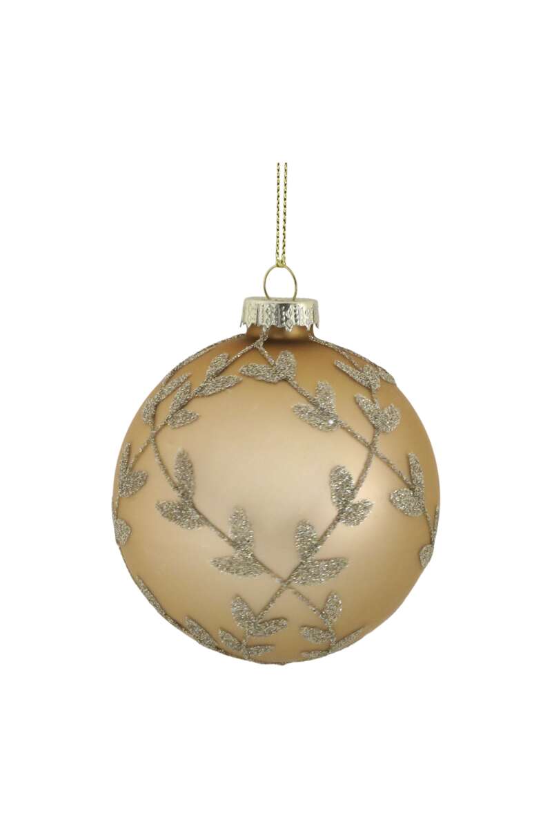 Artikelnummer: 54282Glaskugel mit Glitzer, ø8cm, Beige mit Gold